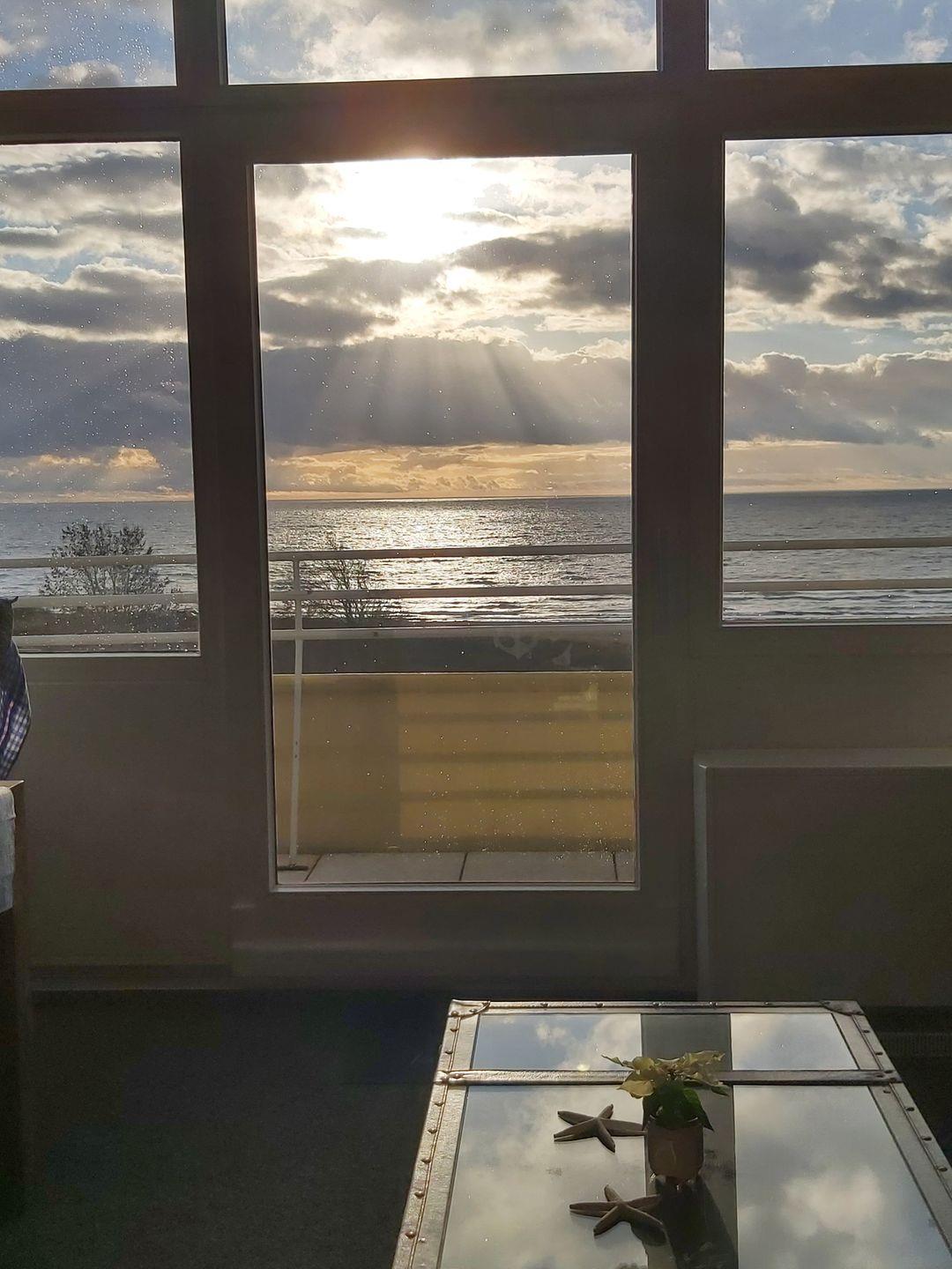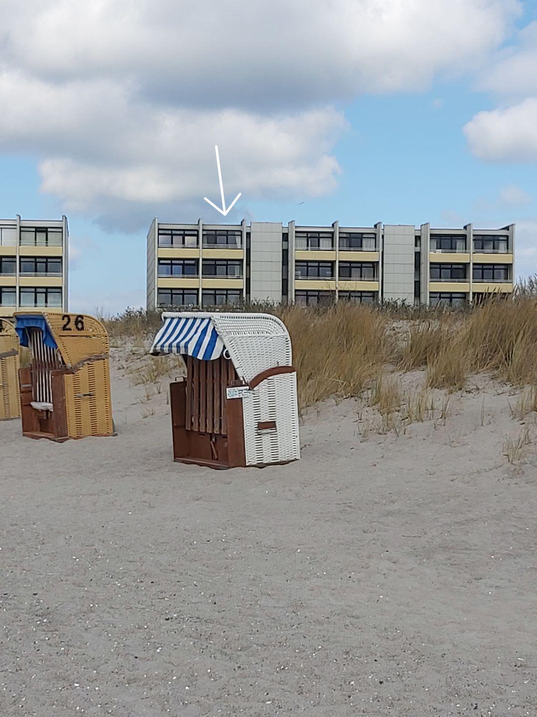 Helle Ferienwohnung "Windflüchter" mit Balkon und Meerblick direkt am Südstrand von Fehmarn.