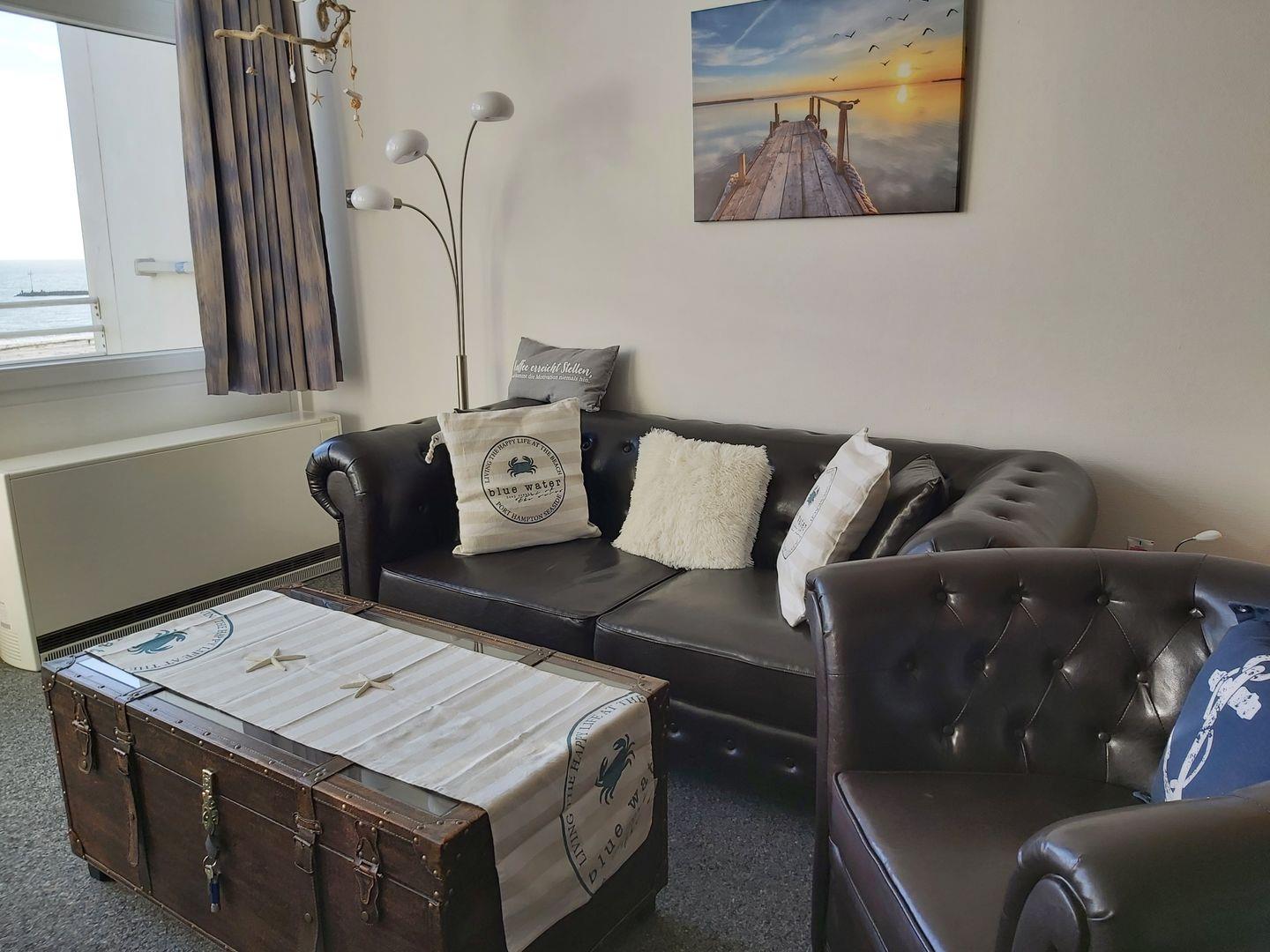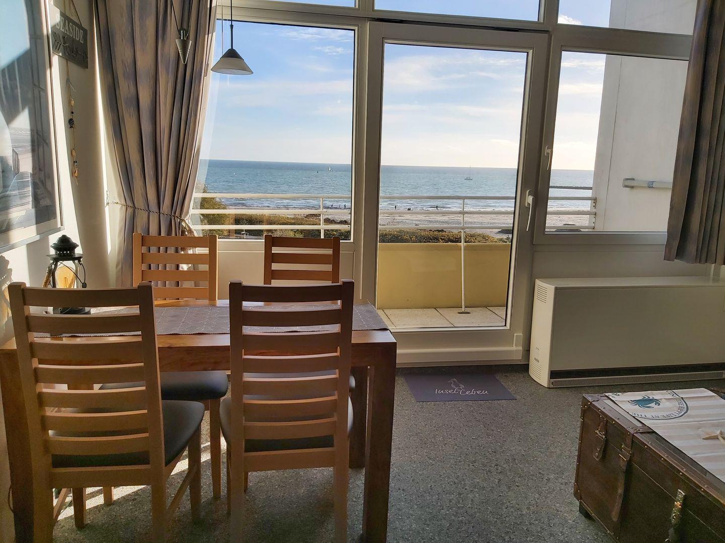 Ein besonderes Highlight ist der Balkon mit dem unvergleichlichen Ausblick über den Südstrand – hier genießen Sie Ihre Auszeit mit Sonne, Meeresrauschen und Fernblick.