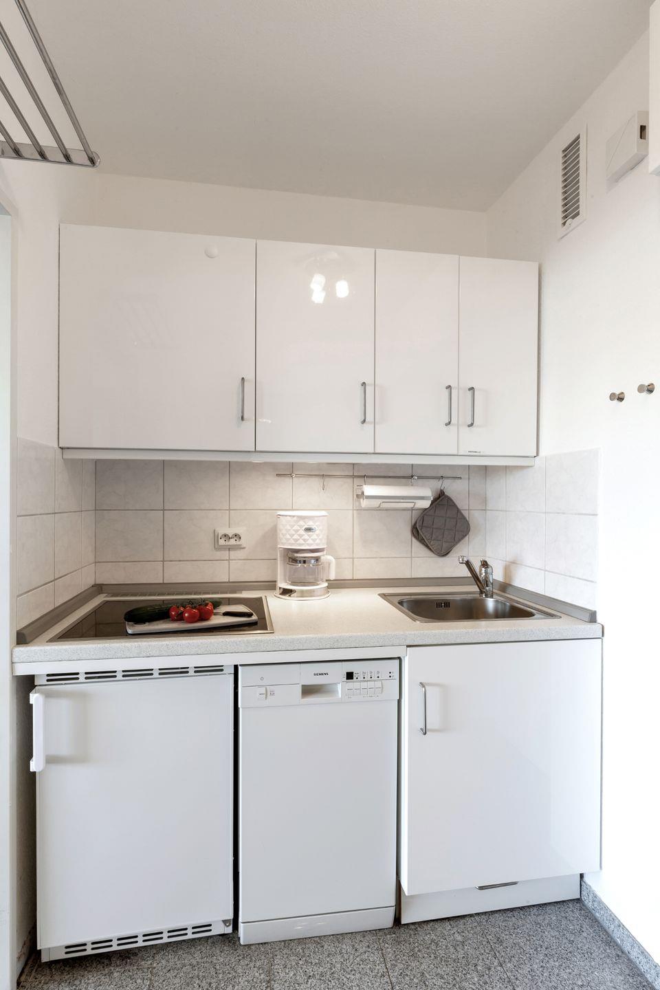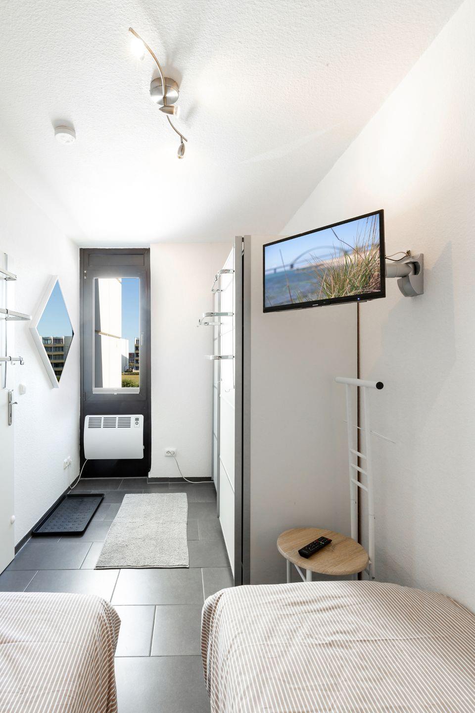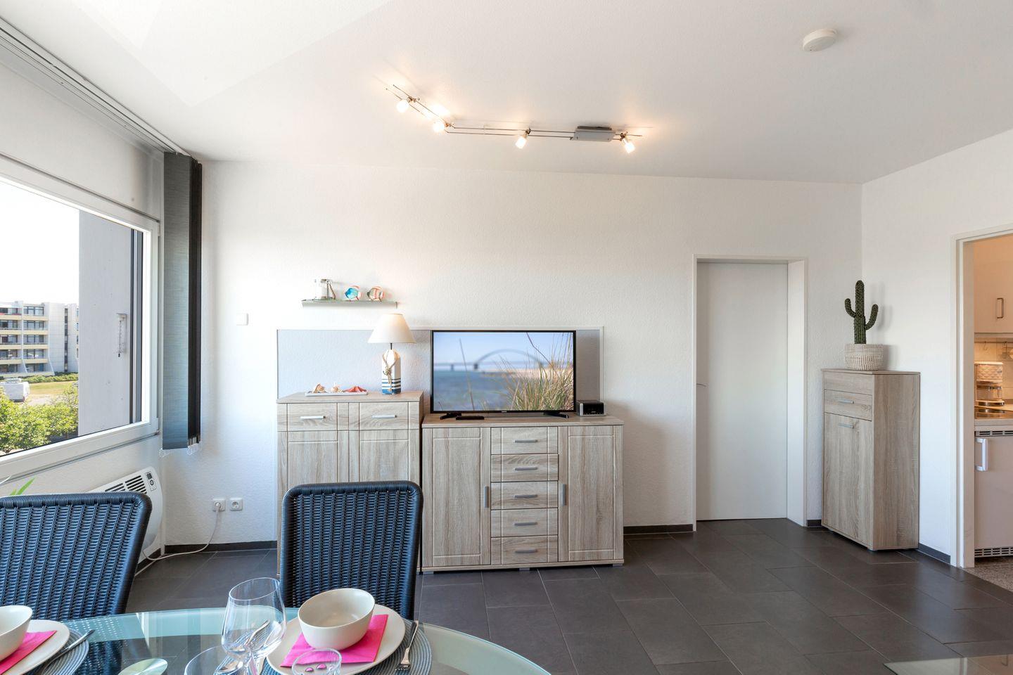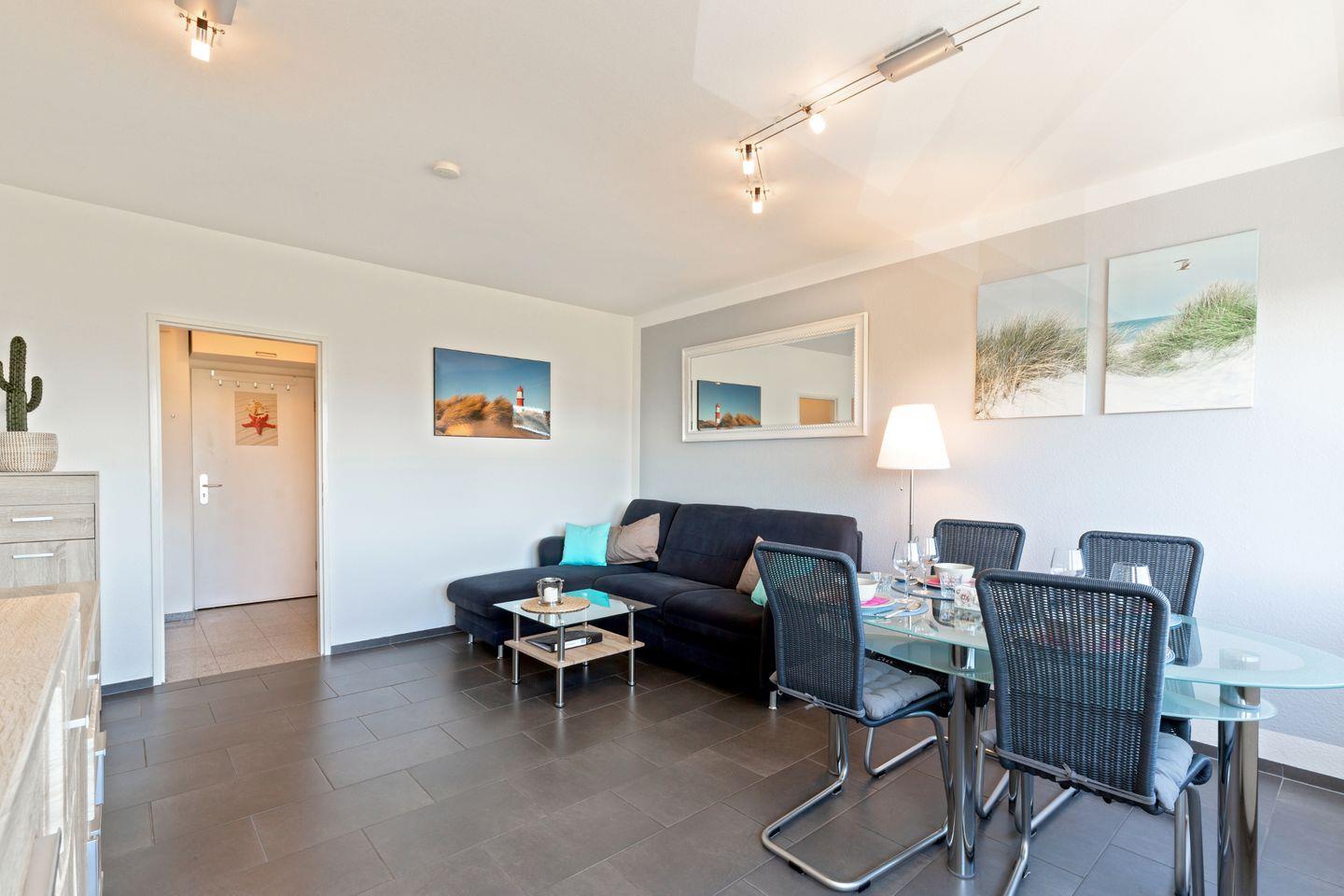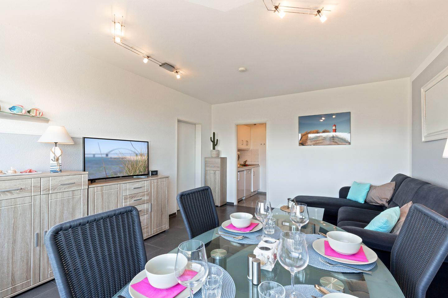 Strandnahe, schöne 35 m² große Ferienwohnung für 4 Personen und Hund mit moderner Einrichtung und Yachthafenblick am Südstrand