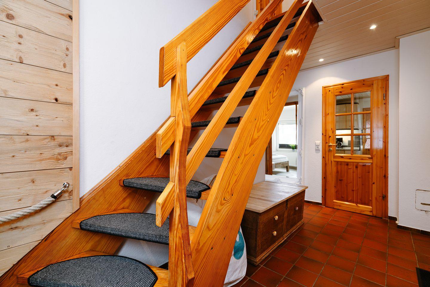 Die möblierte Terrasse lädt zum Frühstück in der Morgensonne oder zum entspannten Ausklang des Tages ein. Zwei private PKW-Stellplätze direkt am Haus machen die Anreise einfach und bequem.