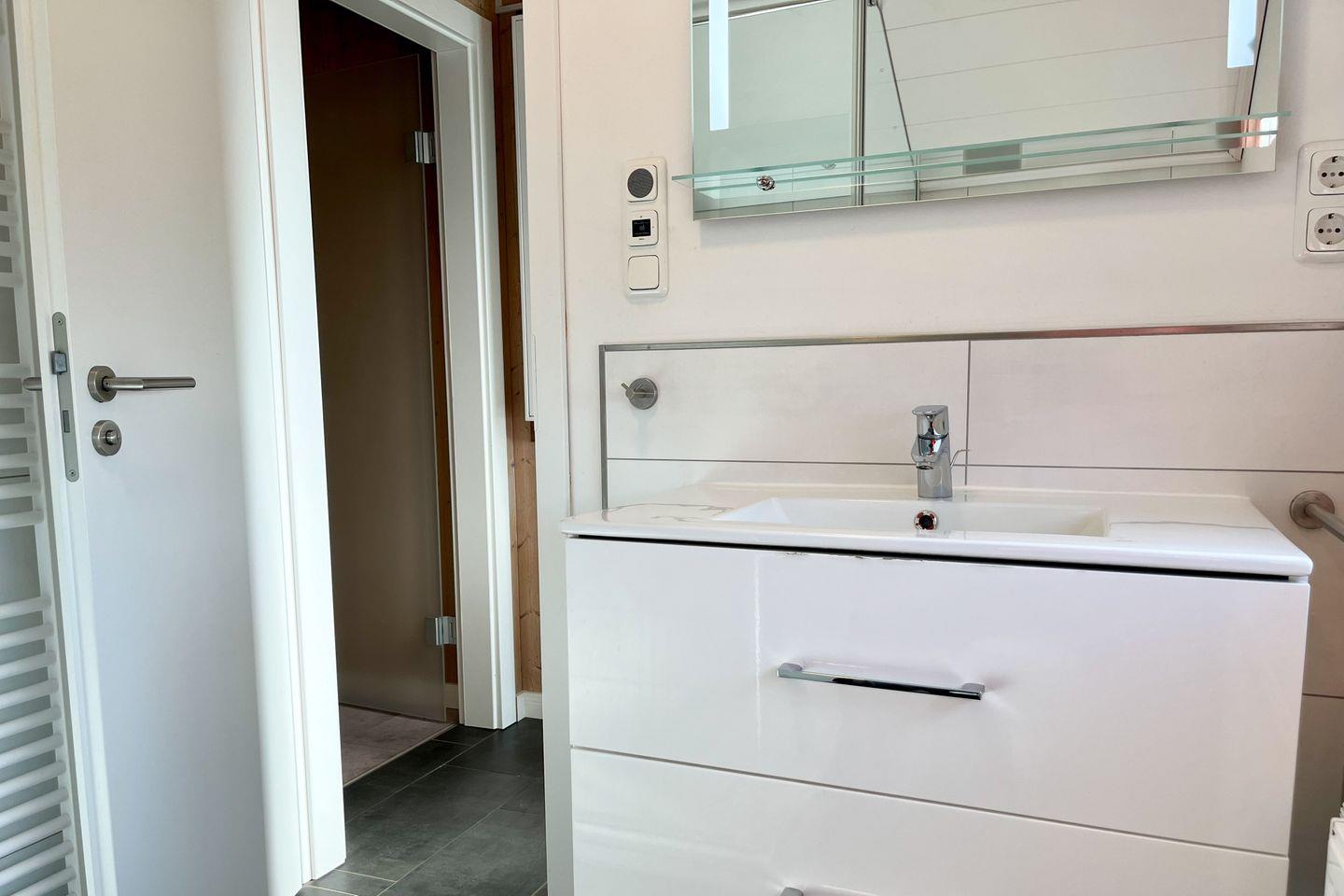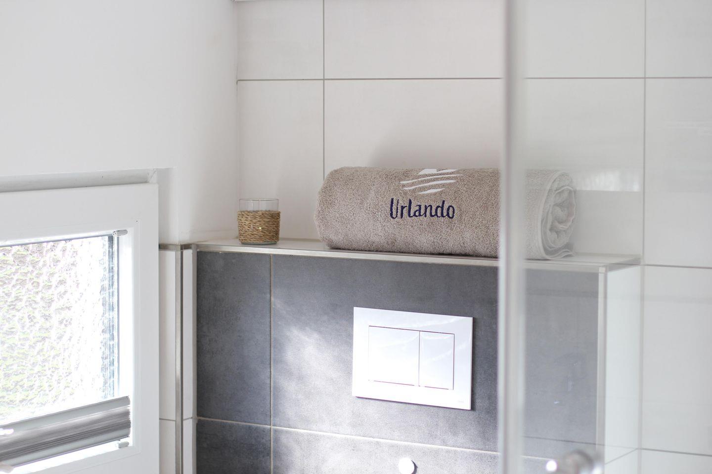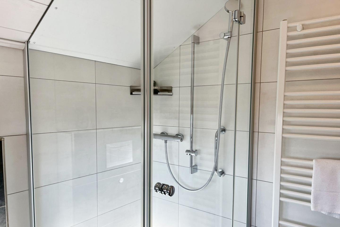 Ein modernes Duschbad mit Fenster rundet das stimmige Raumkonzept ab.