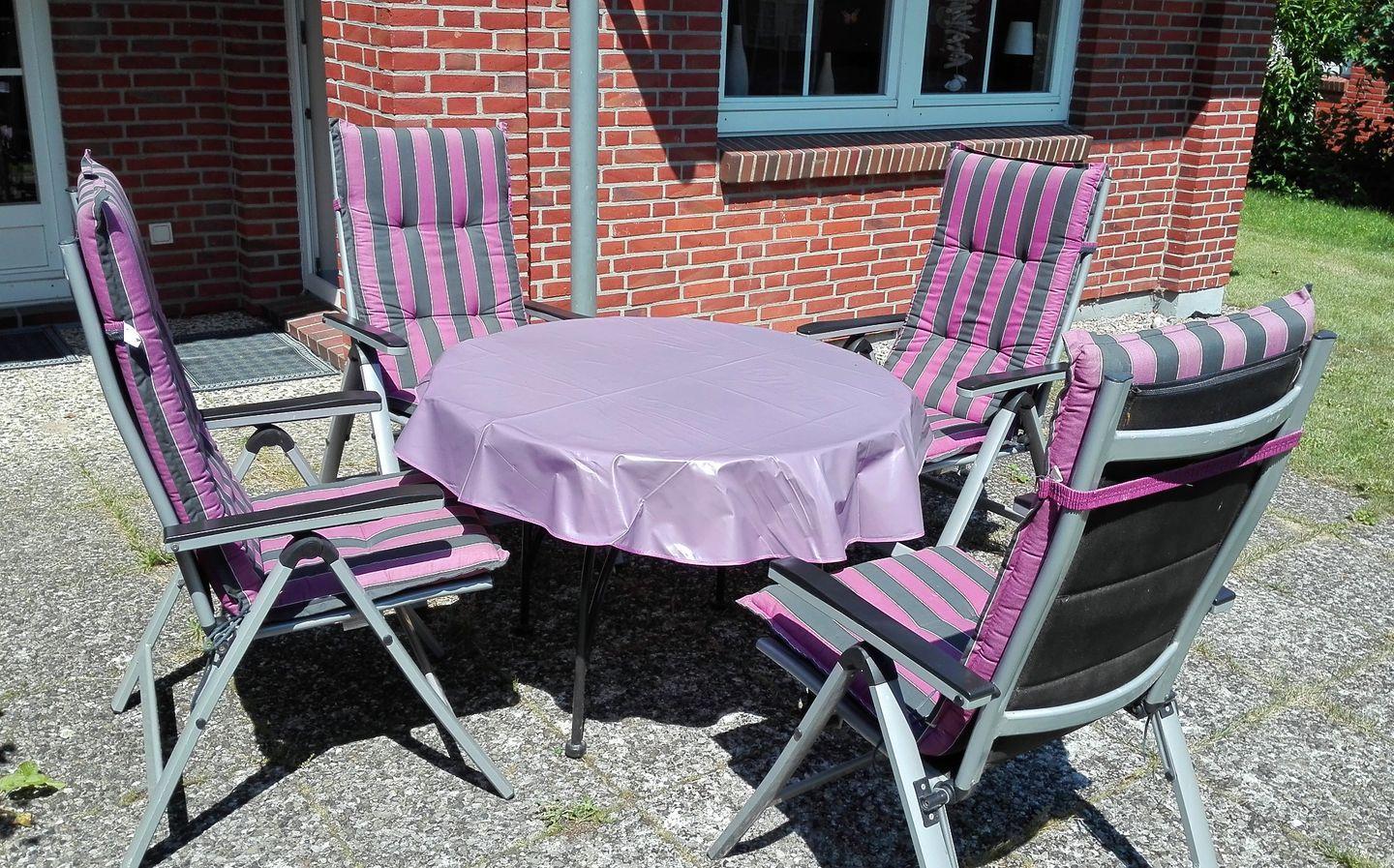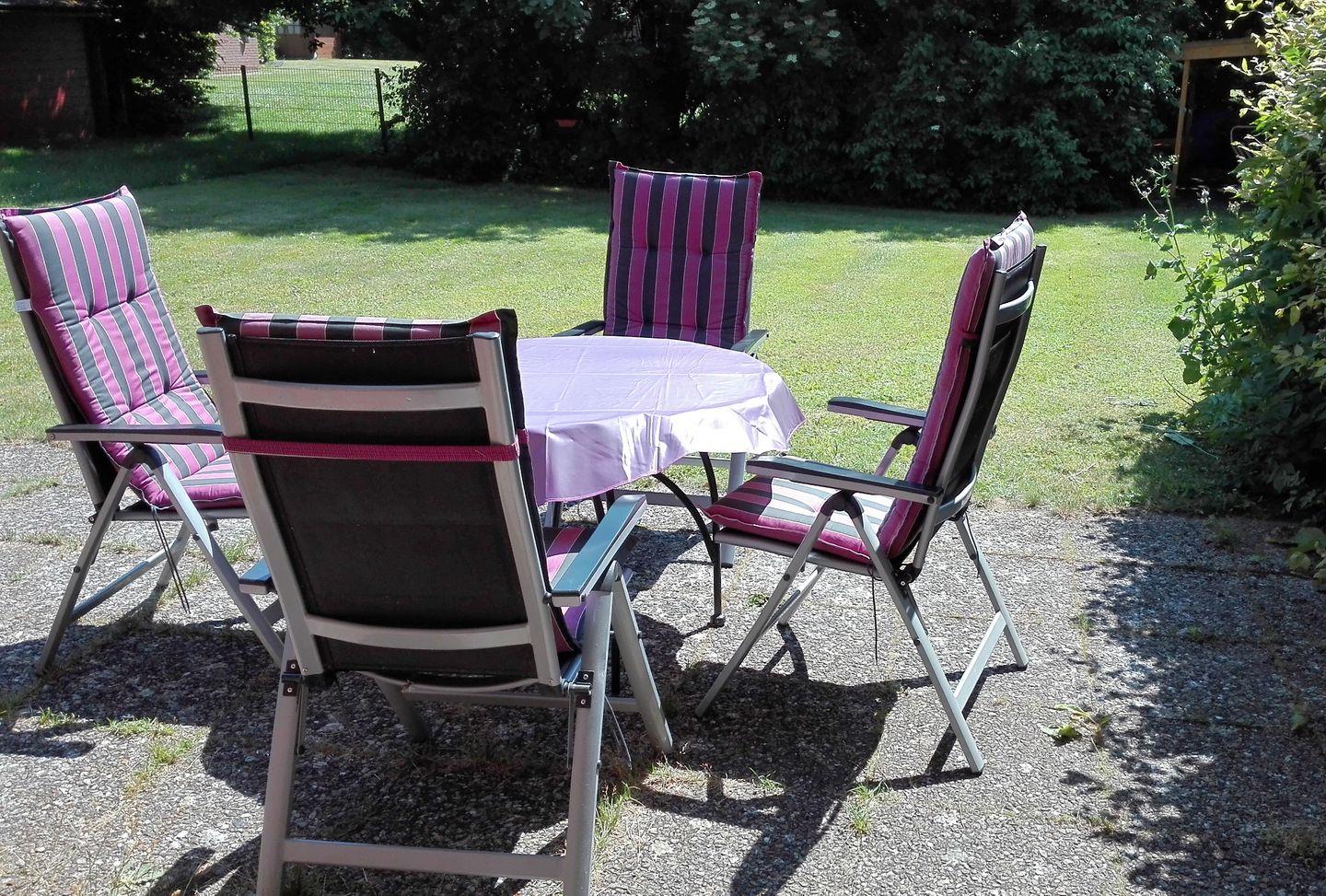 Wohnzimmer und Terrasse sind nach Süden ausgerichtet, sodass Sie den ganzen Tag über die Sonne genießen können. Im grünen Garten mit Sitzmöbeln lässt es sich wunderbar entspannen, essen oder einfach mal die Seele baumeln lassen.