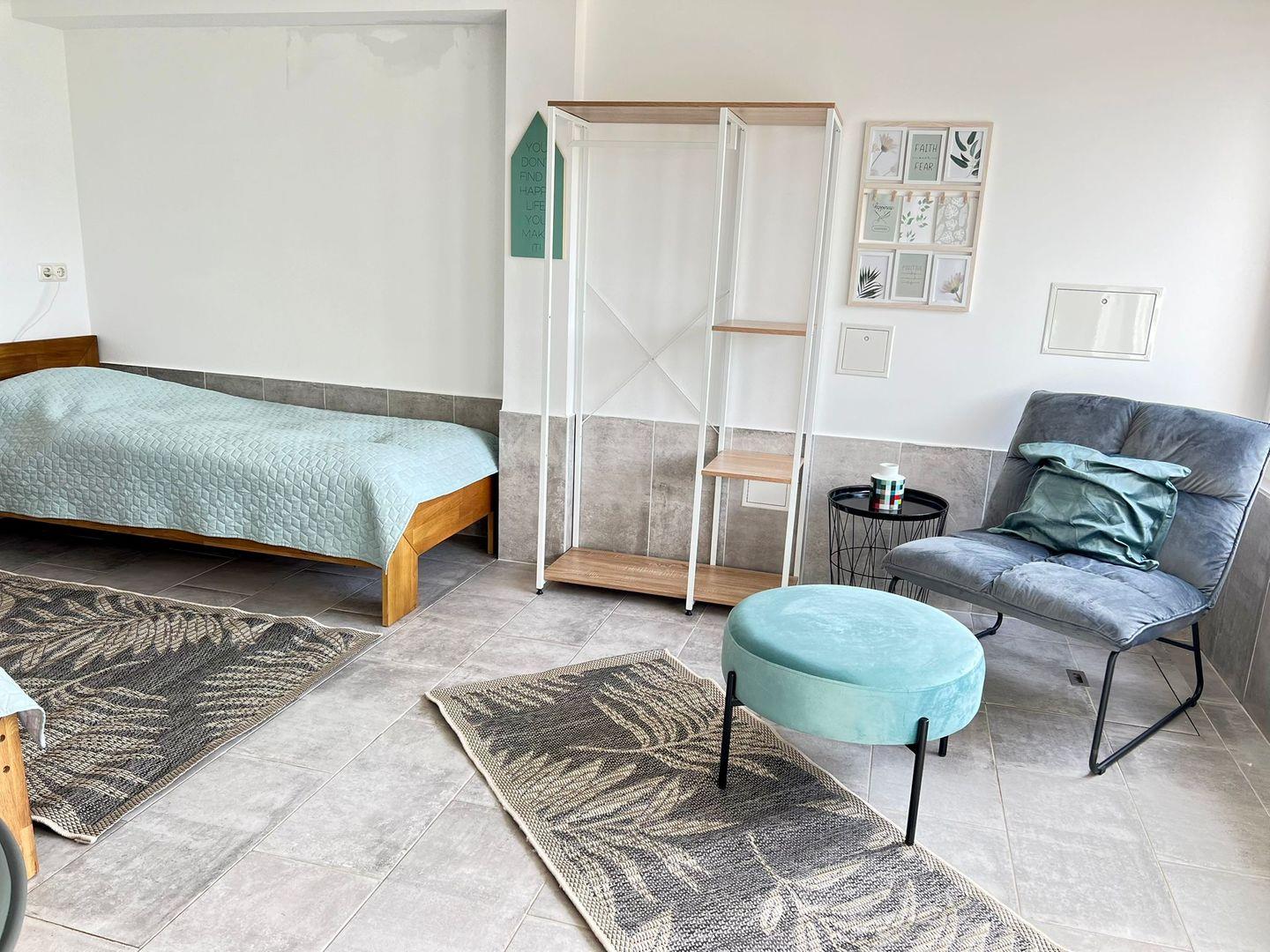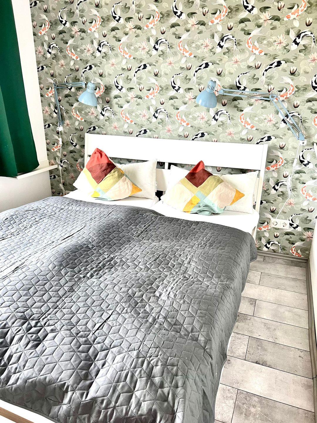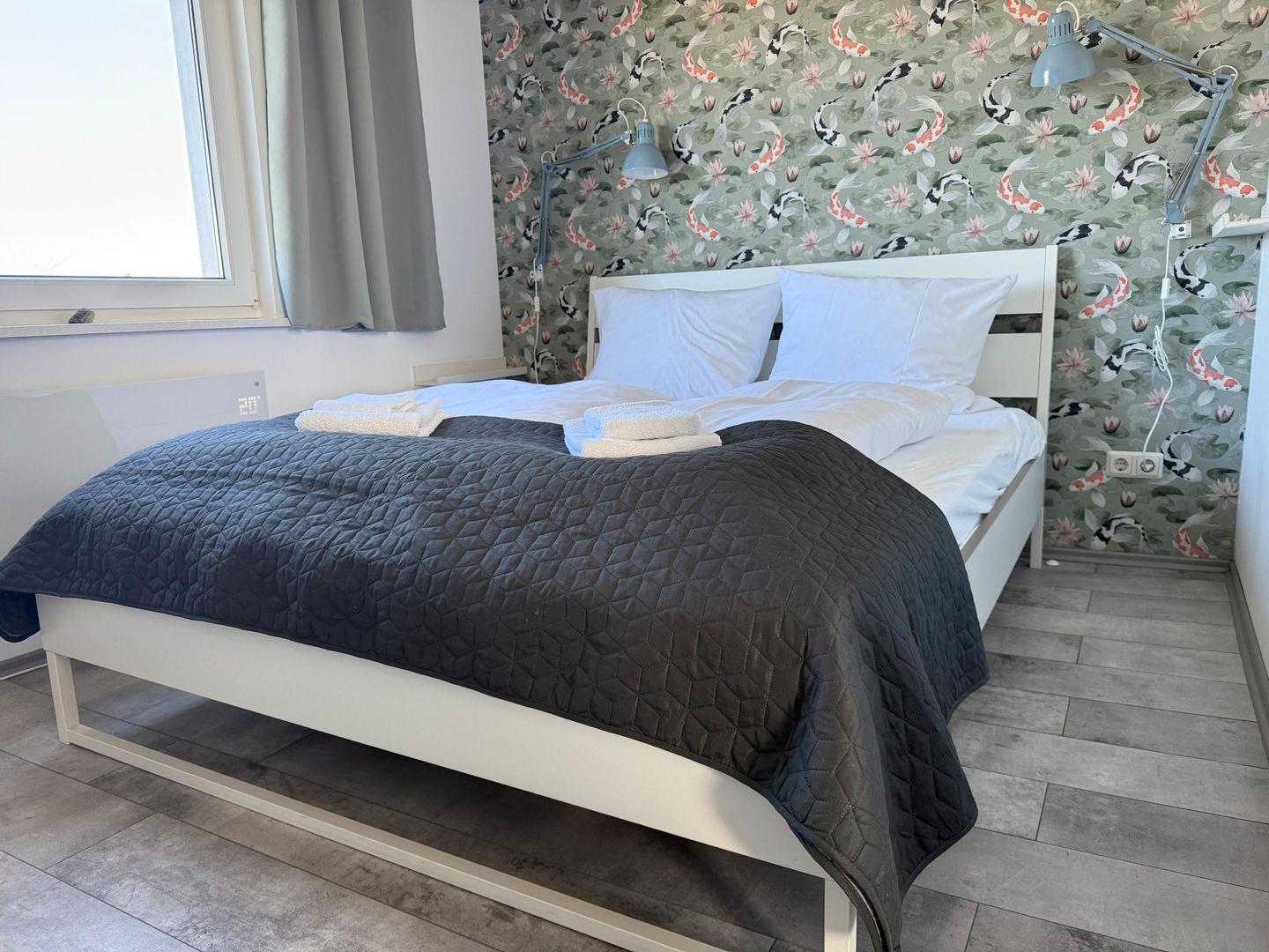 Über die Außentreppe gelangen Sie ins Obergeschoss, wo Sie ein weiteres Schlafzimmer mit Doppelbett, eine voll ausgestattete Küche, ein gemütlicher Essbereich, das Wohnzimmer sowie ein modernes Duschbad erwarten. Für die schnelle, fettarme Küche steht Ihnen zudem eine Heißluftfritteuse zur Verfügung.
