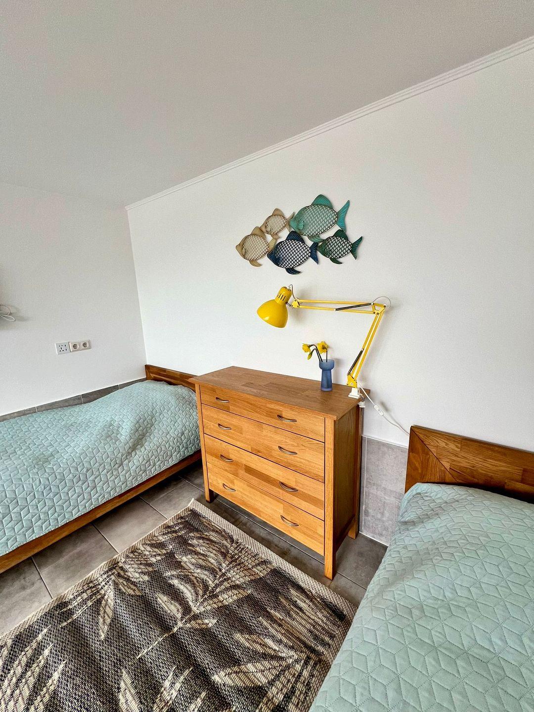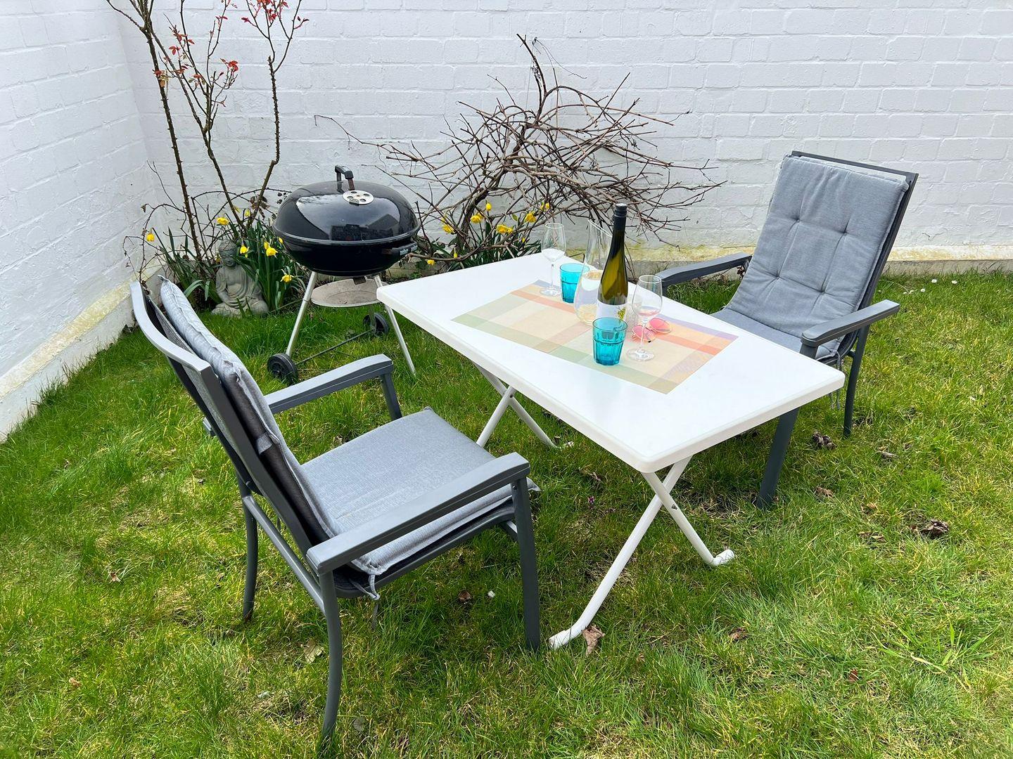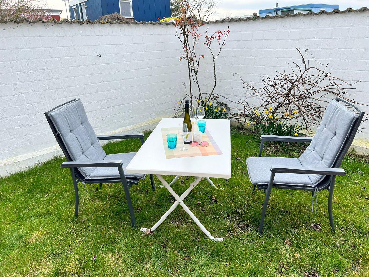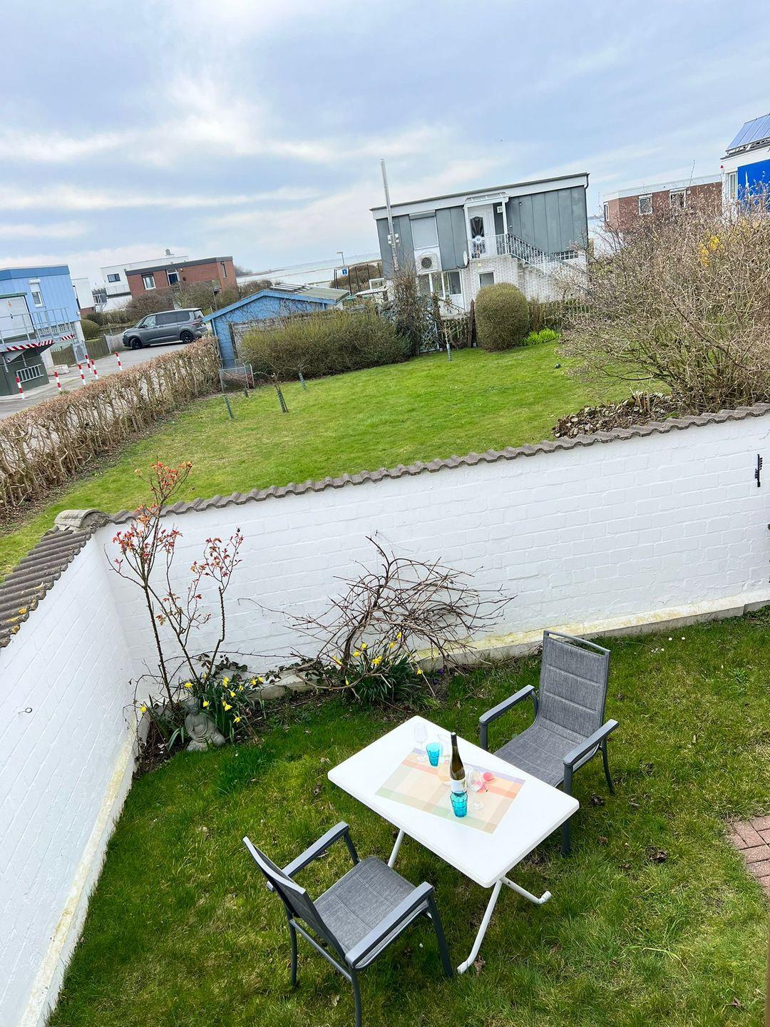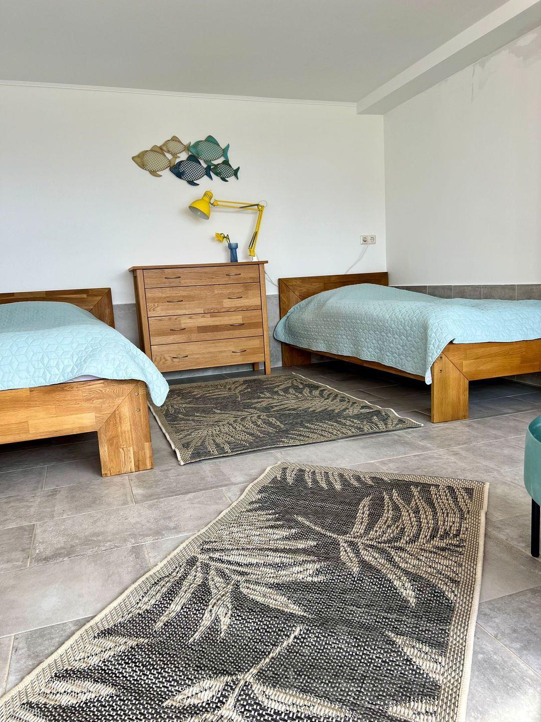 Im Erdgeschoss erwartet Sie ein Schlafzimmer mit zwei Einzelbetten, ein Gäste-WC sowie der Zugang zum privaten Innenhof mit direktem Zugang zum Garten – ein wunderbarer Ort zum Entspannen im Grünen.