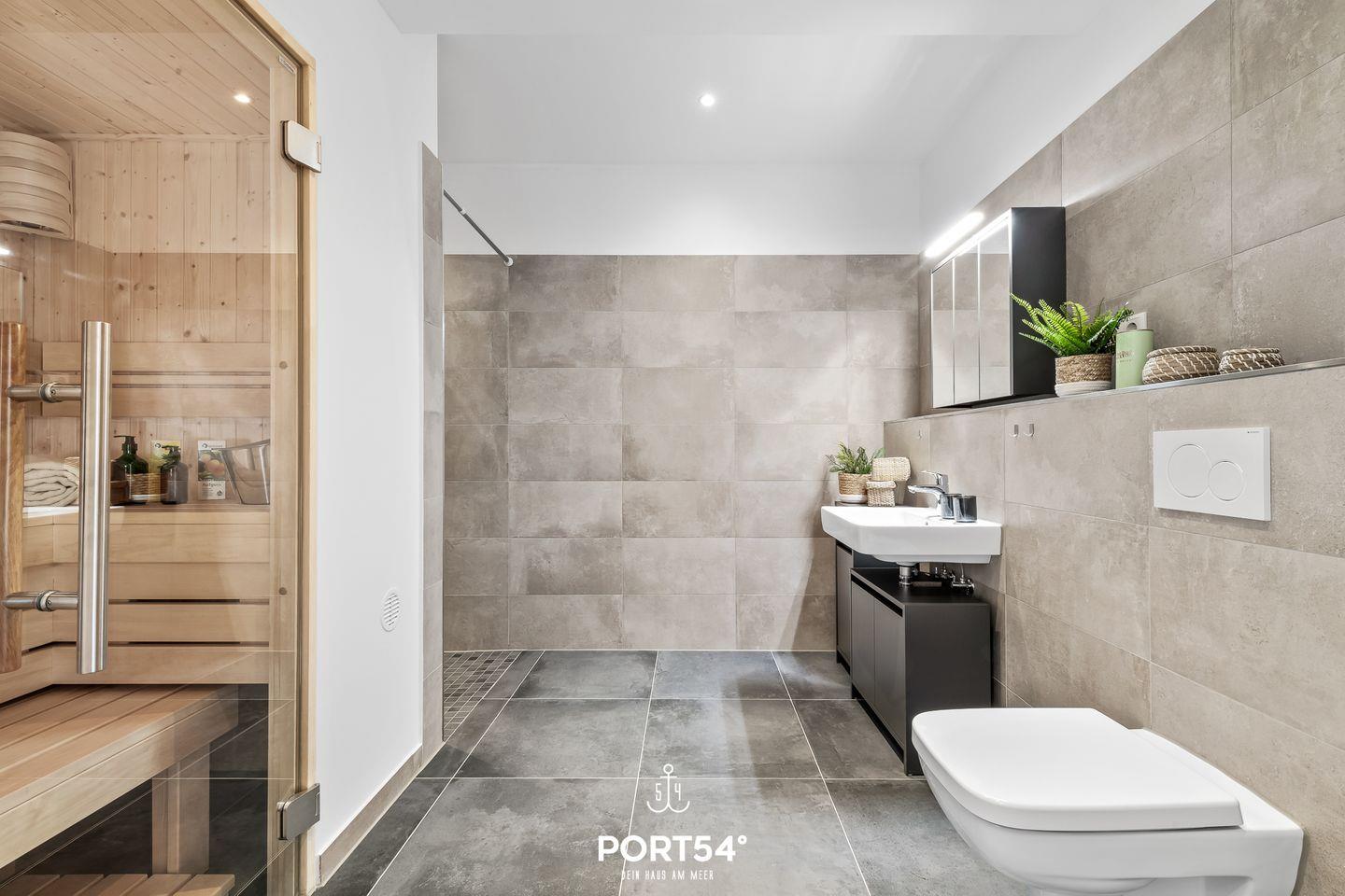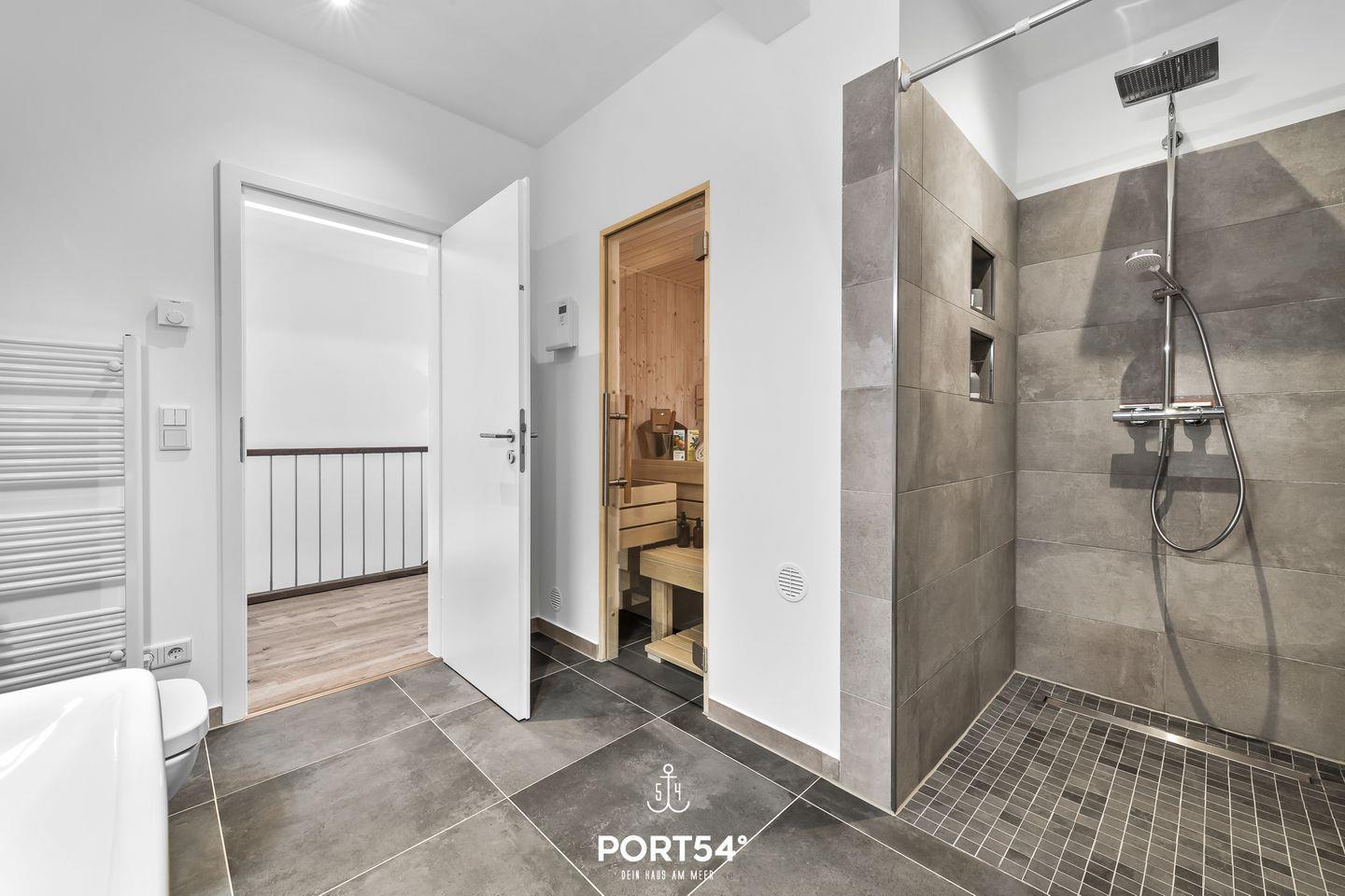 Außerdem findest Du hier das luxuriöse Badezimmer mit finnischer Sauna.