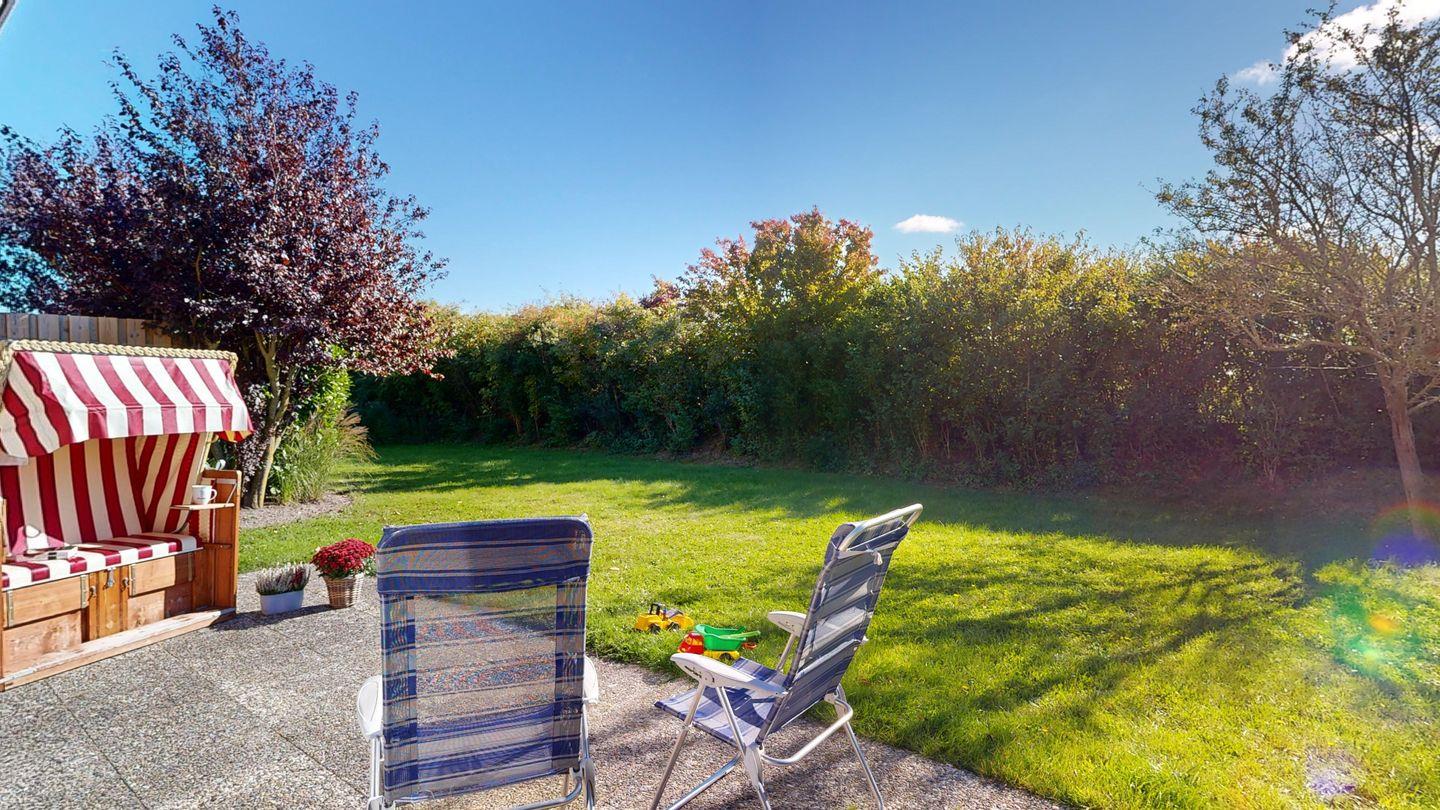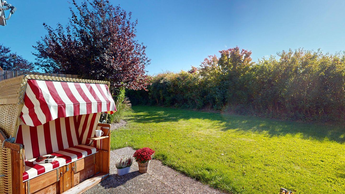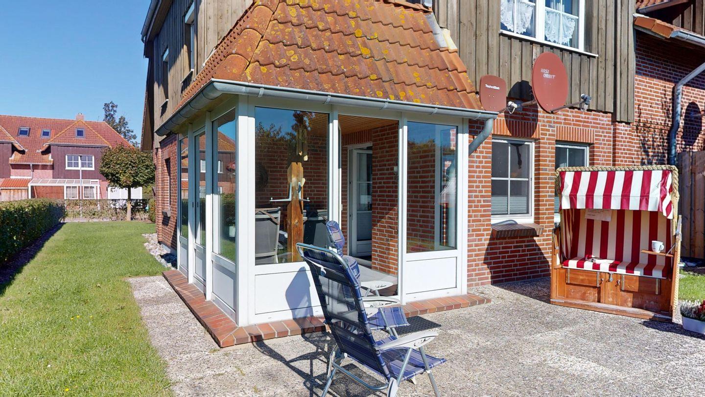 Ein besonderes Highlight ist der lichtdurchflutete Wintergarten, der nahtlos in die möblierte Terrasse mit Strandkorb übergeht – der perfekte Ort für Frühstück an der Sonne, Lesen am Nachmittag oder ein Glas Wein am Abend.
