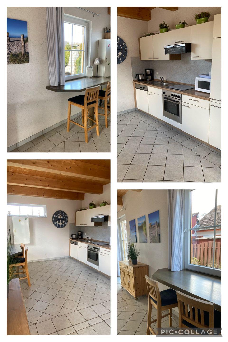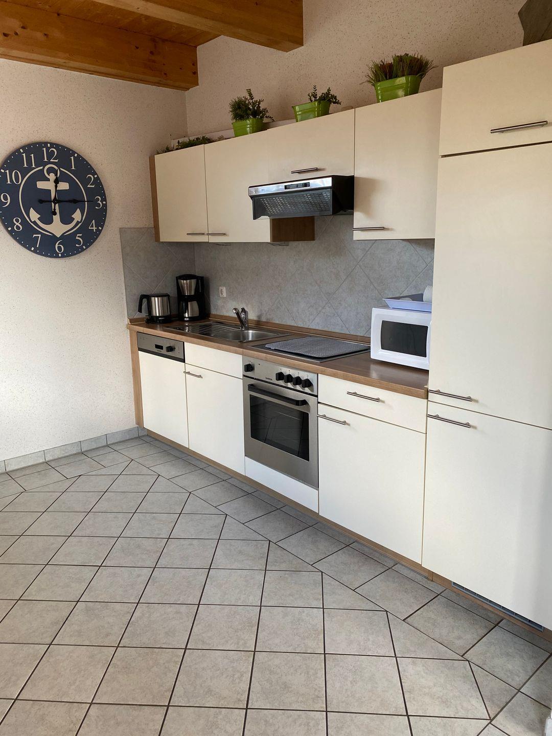 Offene Küche mit Einbauküche und Essbereich und moderner Ausstattung (Geschirrspülmaschine, Ceranherd, Backofen, Kaffeemaschine, Wasserkocher, Toaster, Gefrierfach)