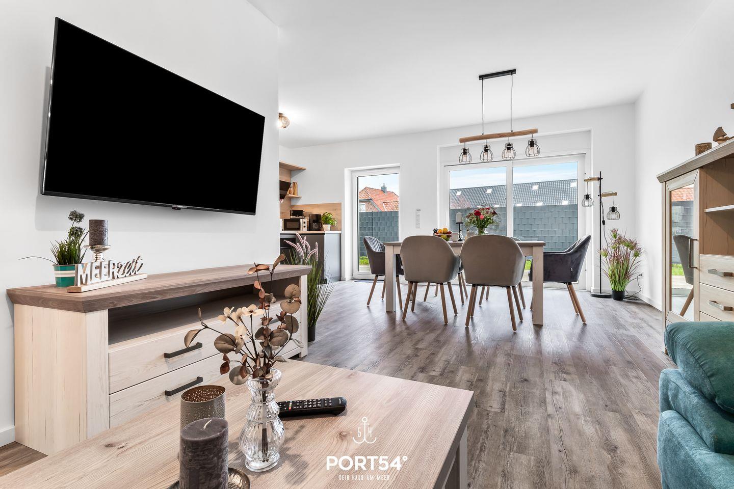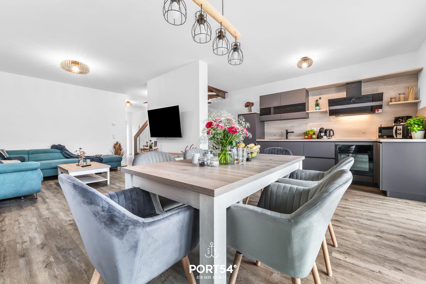 Fühl Dich wie zu Hause in der „Meerheimat“! Auf zwei Etagen und über 122 m² Wohnfläche bietet Dir das Haus drei Schlafzimmer, zwei Badezimmer, einen geräumigen Wohn- und Essbereich mit angrenzender offener Küche, ausgestattet mit allen wünschenswerten Küchenutensilien, sowie eine vollmöblierte Sonnenterrasse.