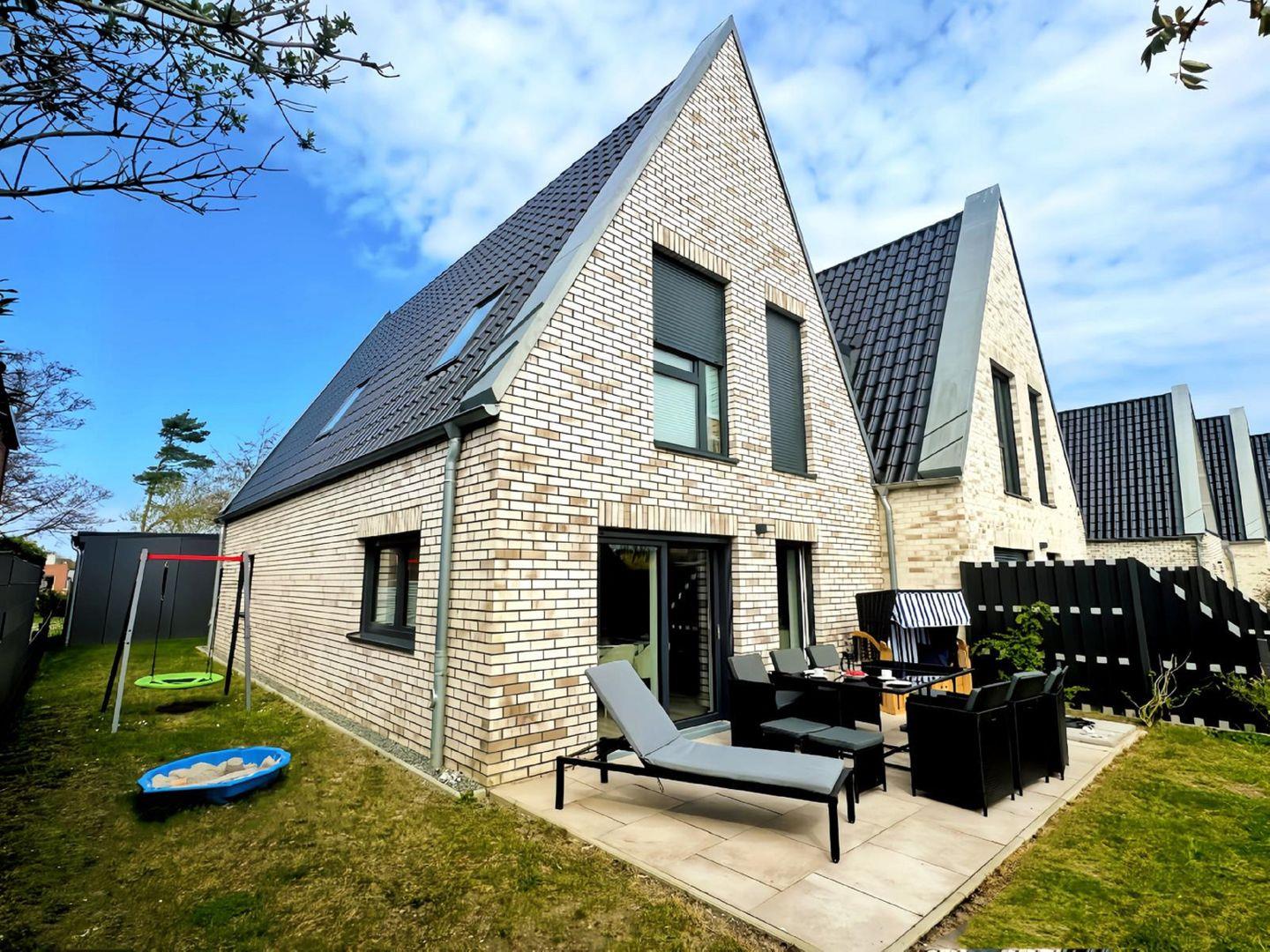 Modernes Ferienhaus Sonnenstein auf Fehmarn mit Sauna, Terrasse und Spielplatz für Familienurlaub.