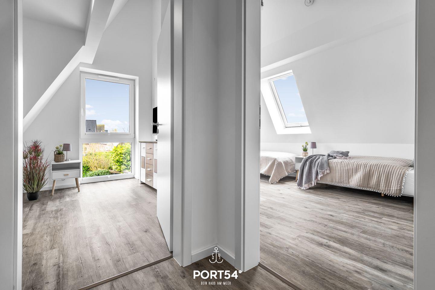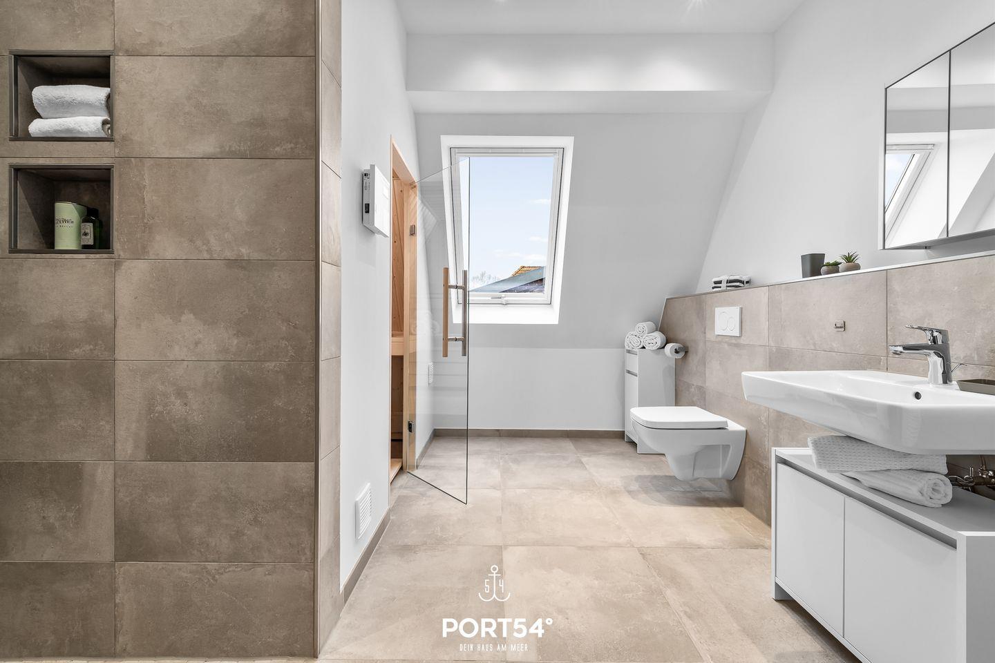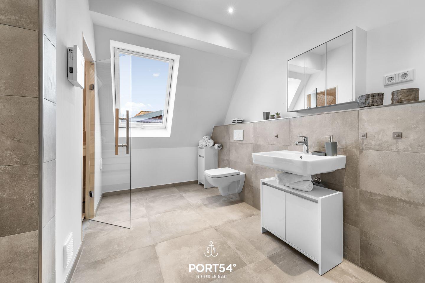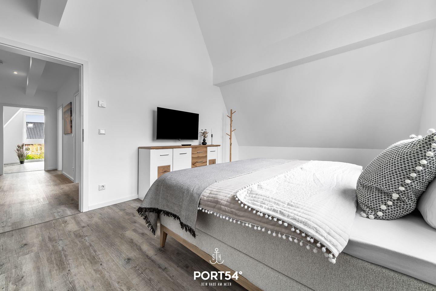 Im Obergeschoss erwarten Dich drei Schlafzimmer sowie das luxuriöse Badezimmer mit finnischer Sauna. Alle Schlafzimmer verfügen über Verdunkelungsmöglichkeiten.