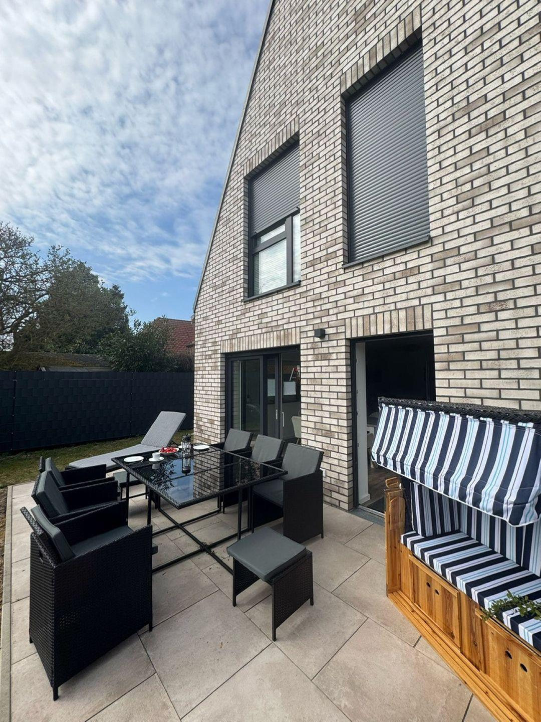 Genieße sonnige Sommertage auf der Terrasse inklusive hochwertigem Elektro-Grill. Das Haus bietet für jede Jahreszeit den perfekten Rückzugsort für einen Ostseeurlaub. Auf der Terrasse findest Du einen Gartentisch mit sechs Stühlen, Sonnenliegen und einen Sonnenschirm. Vor dem Haus steht Dir ein kostenfreier Parkplatz zur Verfügung.