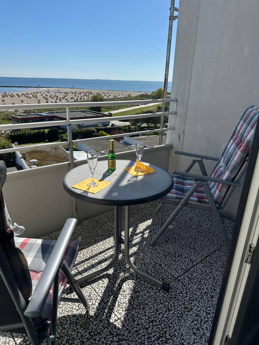Genießen Sie nach schönen Strandtagen Ihre Abende bei einem Glas Wein auf dem Balkon, mit traumhaften Ausblick auf die Ostsee die Hafenausfahrt und den Strand.