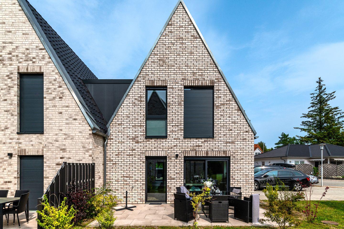 Modernes Ferienhaus Donnerkeil mit finnischer Sauna und Sonnenterrasse auf Fehmarn, ideal für Familien und Erholung an der Ostsee.