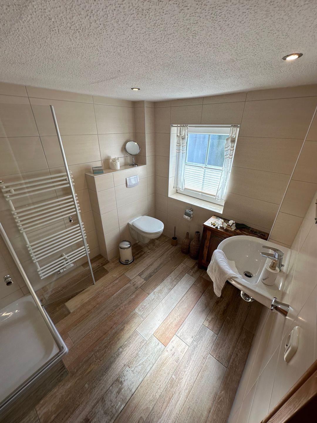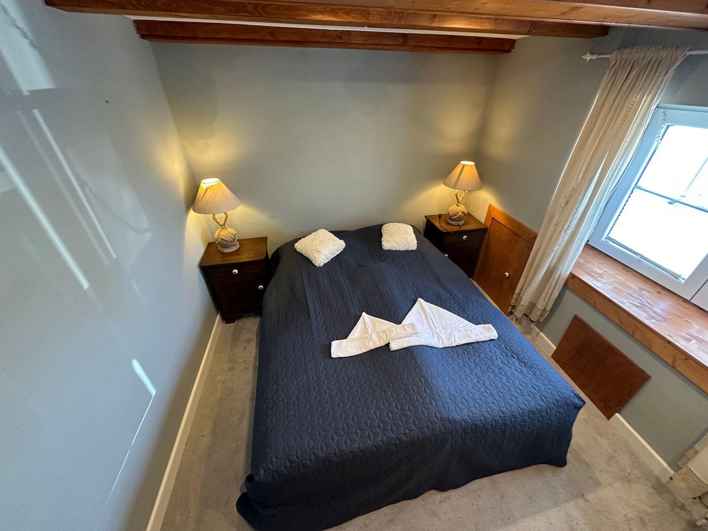 Im kleinen, sehr gemütlichen Schlafzimmer lässt sich der ein oder andere Herbsttag mit einem guten Buch beenden, oder sie wählen dazu das einladende Ledersofa im Wohnzimmer und heizen den Kaminofen an. Hier lassen sich auch verregnete Insel Tage genießen. Einen weiteren geschützten Lese-, Ruhe- und Essplatz finden Sie auf der überdachten Holzterrasse. Diese ist wie ein weiterer kleiner Teil des Gartens für Ihre persönliche Nutzung blickdicht vom restlichen Garten abgetrennt. Vor dem Cottage ist ein PKW Stellplatz für Sie reserviert, ein abschliessbarer Fahrradschuppen steht für ihre privaten Räder bereit.