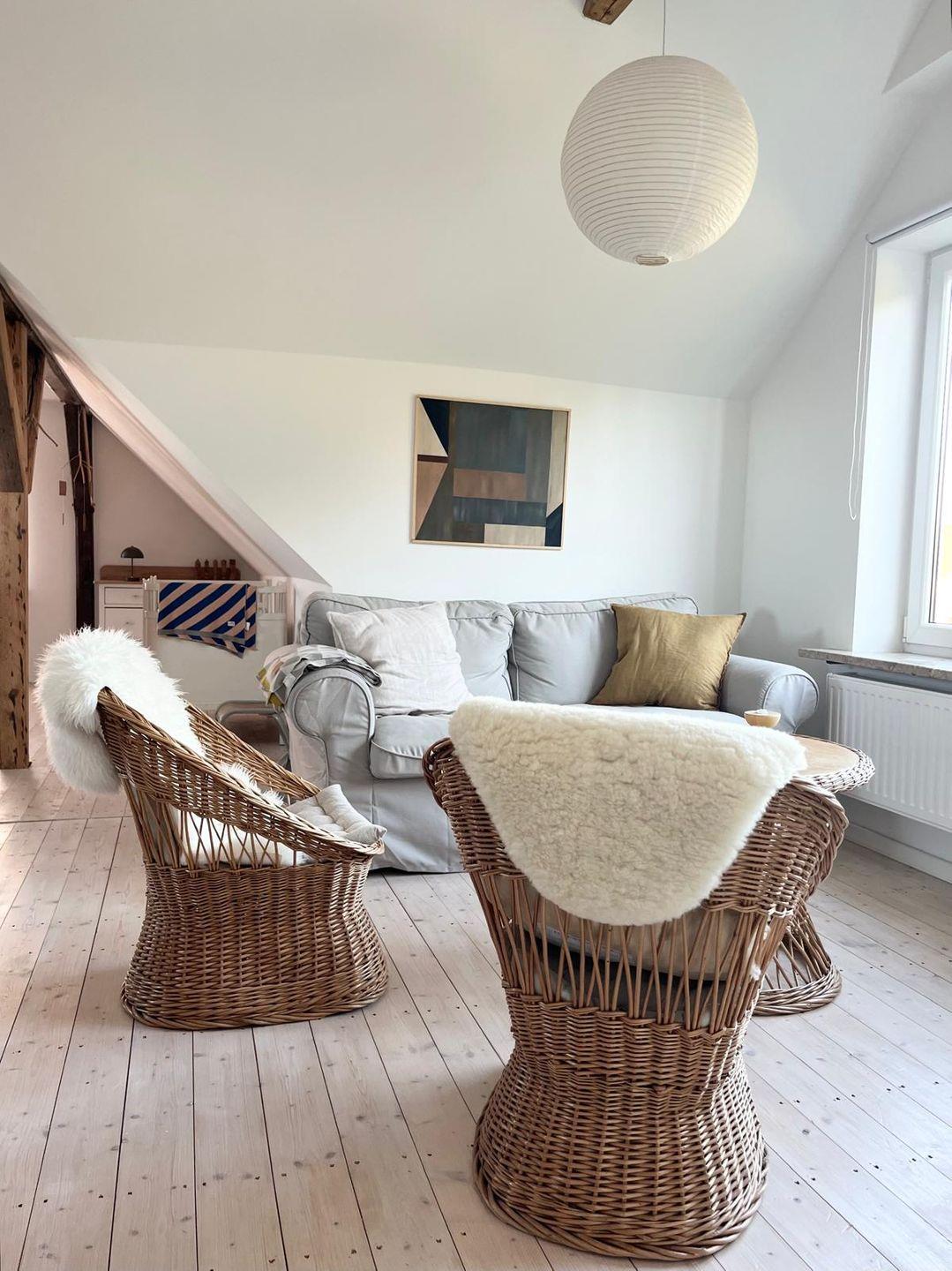 Auf 110 m² bietet es Platz für bis zu 5 Personen und befindet sich auf einem vollständig eingezäunten Grundstück. Helle, luftige Räume, durchflutet von natürlichem Licht, sanfte Farben und der historische Charme schaffen eine einladende Hygge-Atmosphäre im Sommerhaus am Dorfteich.