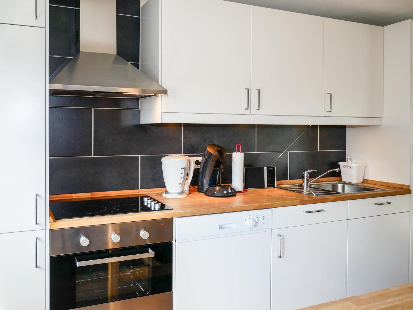 Die Wohnung verfügt über zwei gut gestaltete Schlafzimmer, die sowohl Komfort als auch Gemütlichkeit bieten. Im hellen Wohnbereich sorgen TV, CD- und DVD-Spieler für Unterhaltung an gemütlichen Abenden. Die offene Küche ist mit modernen Geräten ausgestattet, darunter ein Herd, Backofen, Spülmaschine und Kühlschrank. So können Sie bei Bedarf Ihre Lieblingsgerichte zubereiten. Ein Essbereich lädt zu gemeinsamen Mahlzeiten ein und ist der perfekte Ort für gesellige Stunden.