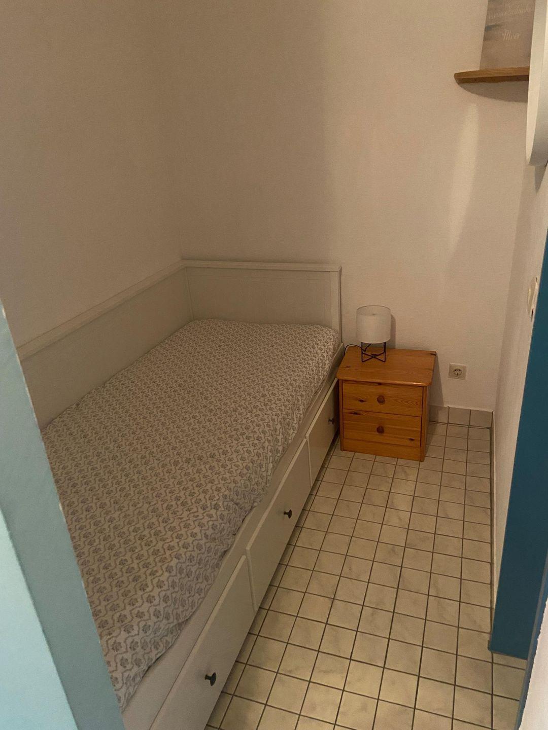 Während der Sommermonate sind ein Lebensmittelgeschäft , ein Bäcker , sowie ein Restaurant in wenigen Minuten zu Fuß erreichbar. Derliegt in unmittelbarer Nähe. Dort finden eine Bootsvermietung, die Surf- und Segelschule. Das "Fehmare" (Hallenbad und Sauna) ist fußläufig erreichbar. Kleine maritime Ferienwohnung mit Yachthafenblick und auf den neuen Aussichtsturm. Die strandnahe Wohnung mit 29 qm befindet sich in der 2. Etage. Zur Ausstattung gehören 1 Pantryküche, 1,5 Zimmer und 1 Bad. Zum Schlafen stehen Ihnen ein Doppelbett und 1 Etagenbett zur Verfügung. Die Wohnung ist zweckmäßig eingerichtet. Ein kostenloser Parkplatz gehört dazu.