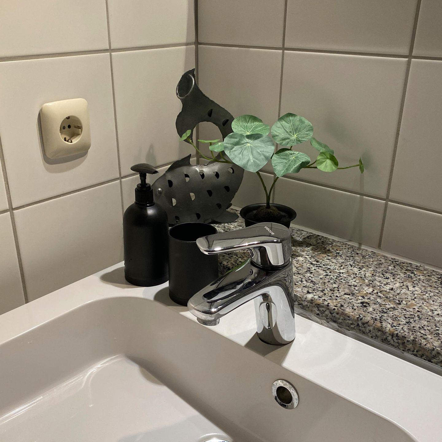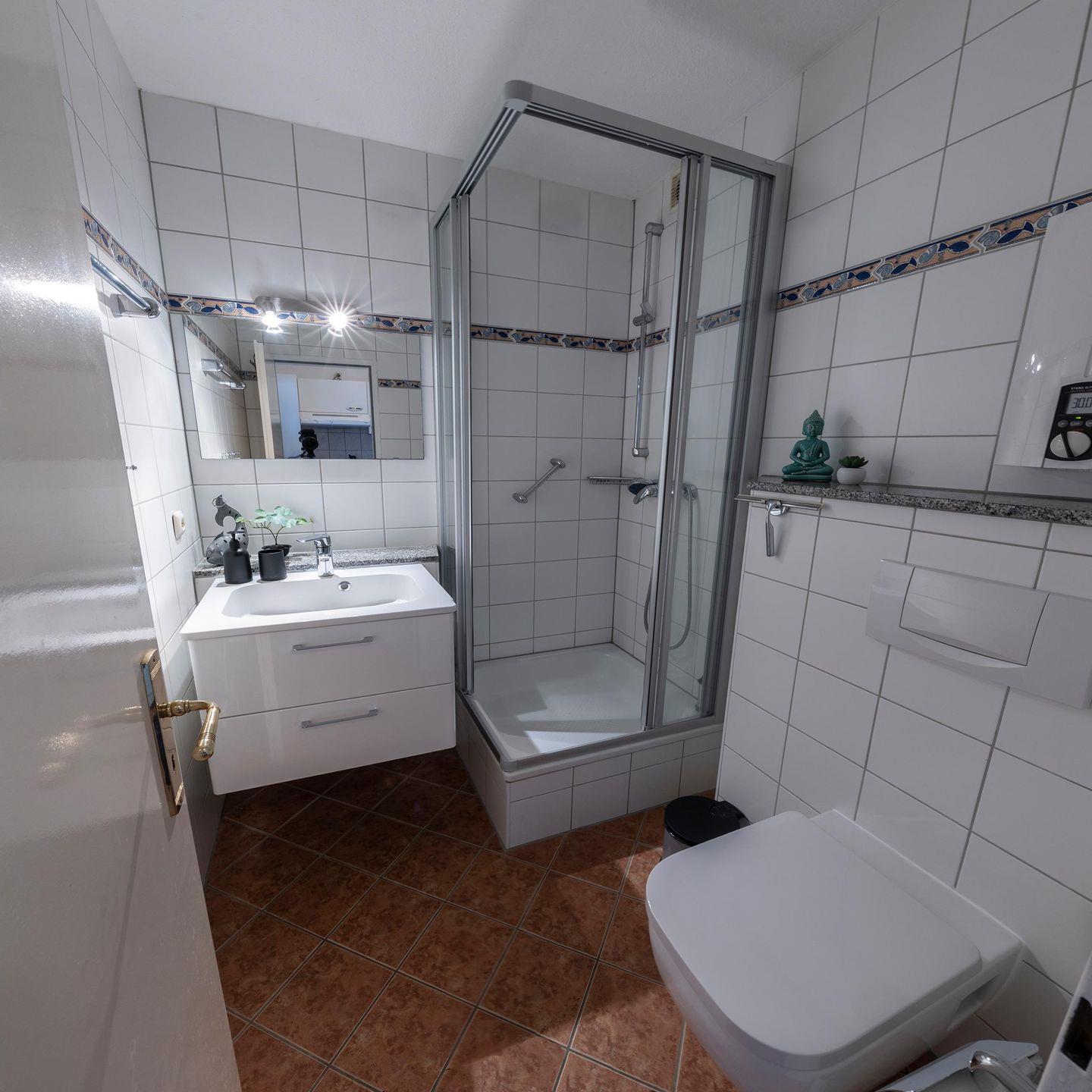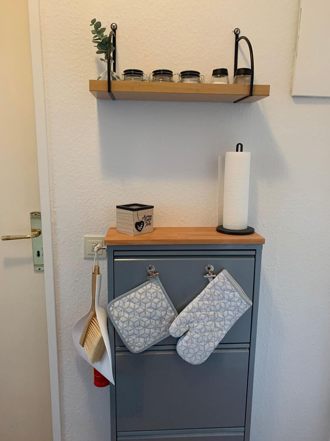 In der Küche finden sich ein Ceranfeld 2 Platten, Kühlschrank mit Gefrierfach, Kaffeemaschine, Wasserkocher, Toaster, ausreichend Töpfe und Geschirr, sowie Gläser.