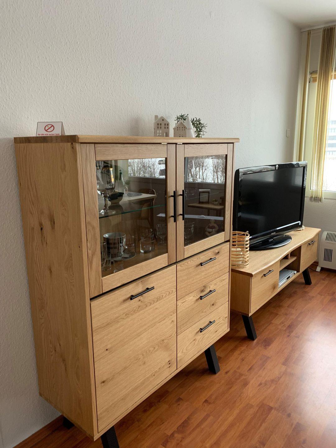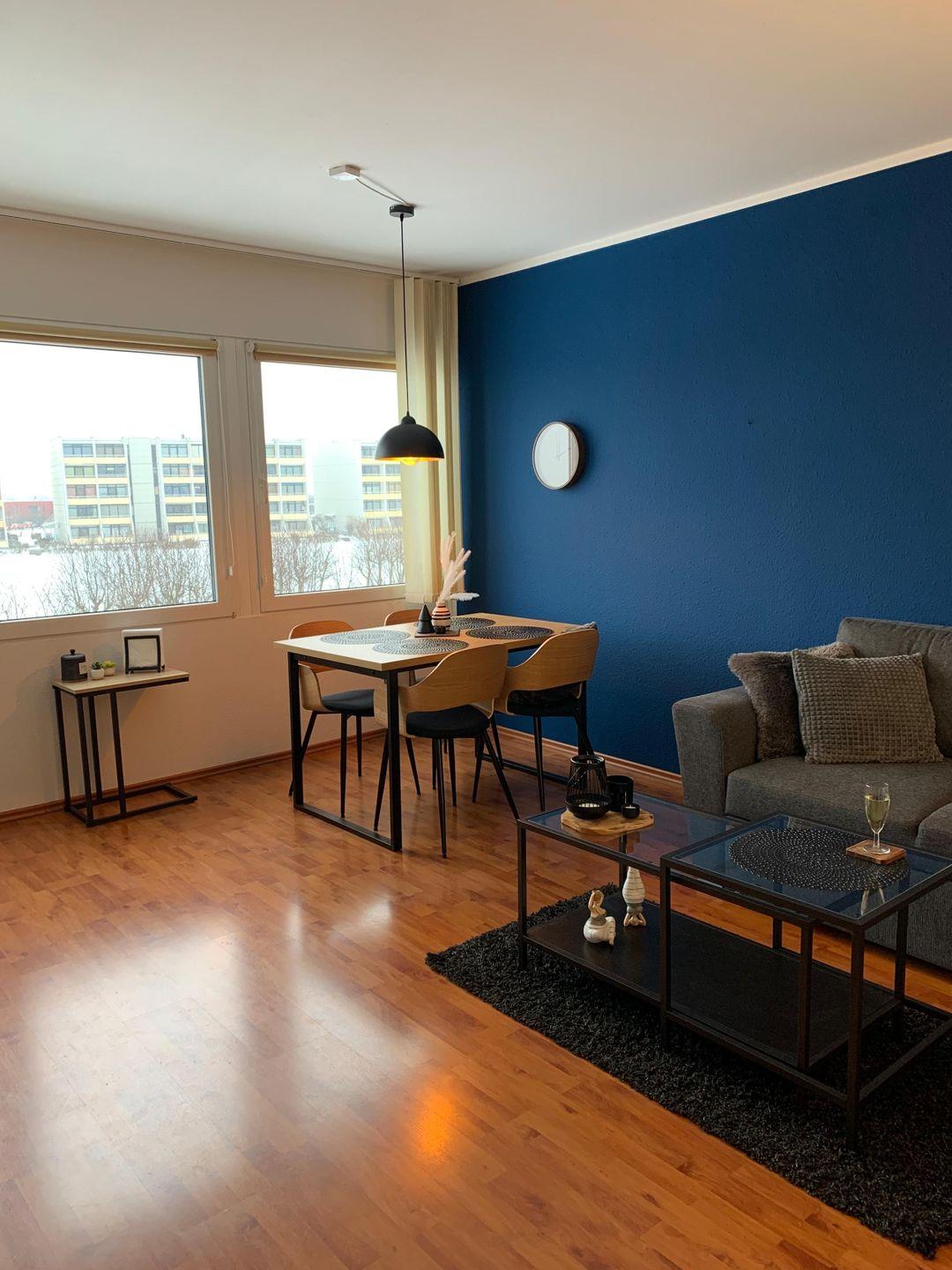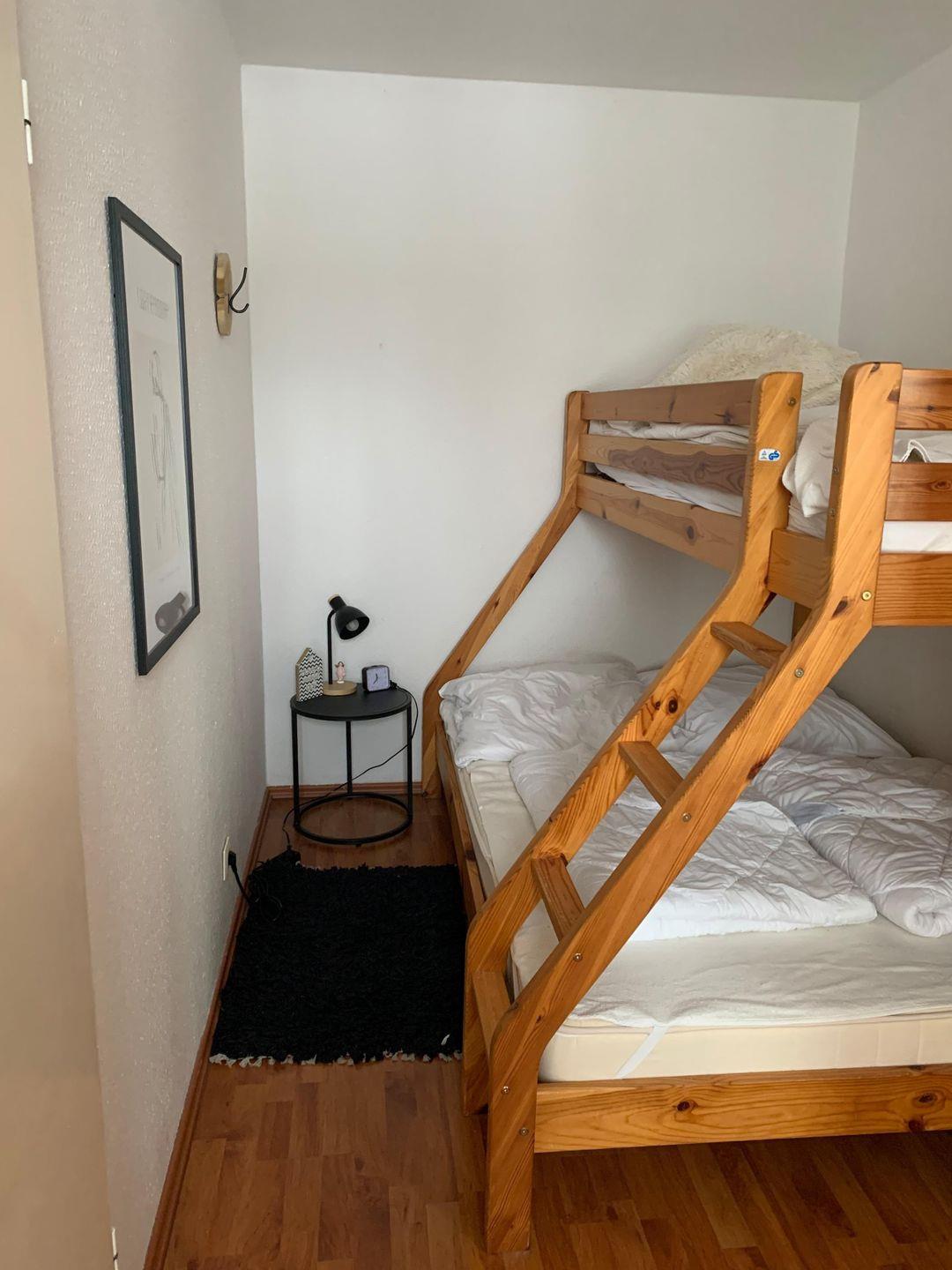 Die 2 Zimmerwohnung liegt in der 2. Etage, verfügt über einen Fahrstuhl, einen direkten, kostenlosen Parkplatz vor dem Haus, ist komplett eingerichtet und verfügt neben einem 140cm breiten Schlafsofa im Wohnzimmer, über ein 140er-Bett und ein 90er-Hochbett im Schlafzimmer. Im hellen, lichtdurchfluteten Wohnzimmer befindet sich ein Fernseher und eine Bluetooth Musikbox.