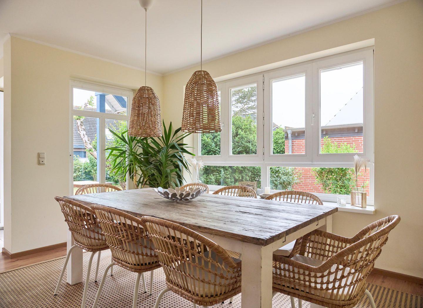 Unser modern maritimes Ferienhaus verfügt über kostenfreies Highspeed-Internet und Smart-TV. Drei behagliche Schlafzimmer mit komfortablen 1,8m Doppelbetten und eine Schlafcouch im Wohnzimmer bieten Platz für max. 8 Personen. In unserem eingezäunten 630 qm großen Garten können Kinder und Eure Vierbeiner unbesorgt toben und spielen. Die Küche ist ausgestattet mit Kühlschrank plus Gefrierfach, Cerankochfeld, Mikrowelle, Geschirrspüler, Waschmaschine mit Trockner, Wasserkocher, Nespresso- und Kaffeemaschine. Der großzügige, luftige Wohn-Essbereich mit Kamin lädt zu gemütlichen Kochabenden und ausgedehnten Spieleabenden ein. Zwei Badezimmer mit Walk-In-Duschen sowie zwei sonnige Terrassen mit Strandkorb und Grill runden das Angebot ab.