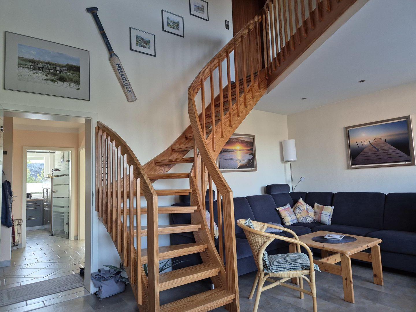 Ein Highlight ist der geräumige Balkon, der viel Platz für Entspannung im Freien bietet. Ein Tisch mit vier Stühlen und Sonnenschirm sind vorhanden. Die "Schöne Auszeit" verfügt außerdem über zwei Bäder, die jeweils mit Dusche und WC ausgestattet sind. Das Badezimmer im Obergeschoss verfügt zudem über eine Waschmaschine. Die beiden Schlafzimmer versprechen Gemütlichkeit und Komfort für erholsame Nächte. In einem Schlafzimmer befindet sich ein weiteres TV-Gerät. Die Küche bietet Ihne eine elektronische Vollausstattung, damit Sie sich kulinarisch versorgen können.