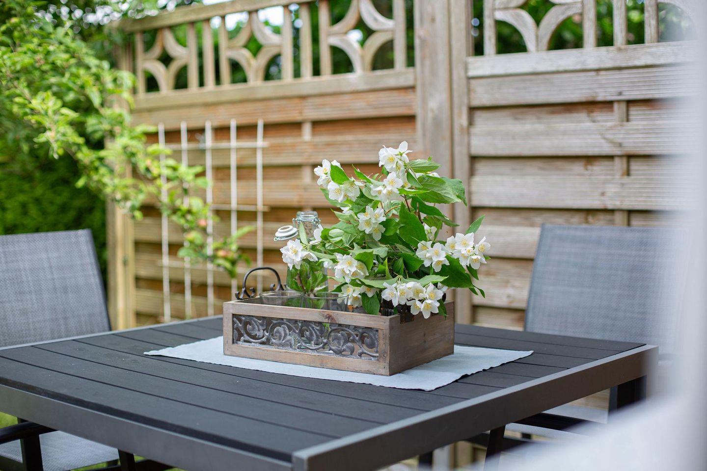 Gemütlicher Ferienbungalow mit eigenem Garten und Terrasse auf der Ostseeinsel Fehmarn, ideal für Familien und Hundebesitzer.