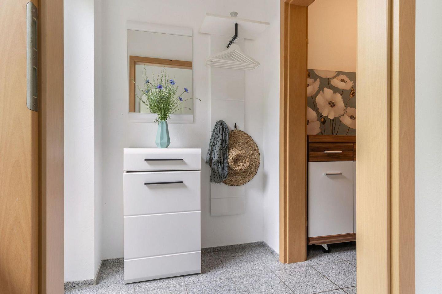 Die Ferienwohnung bietet Ihnen auf 57 m² alles, was Sie für einen erholsamen Urlaub brauchen. Die Wohnung verfügt über ein geräumiges Schlafzimmer, ein gemütliches Wohnzimmer, eine voll ausgestattete separate Küche und ein modernes Bad mit Dusche. Alle Räume sind liebevoll eingerichtet und bieten eine behagliche Atmosphäre, in der Sie sich sofort wie zu Hause fühlen werden.