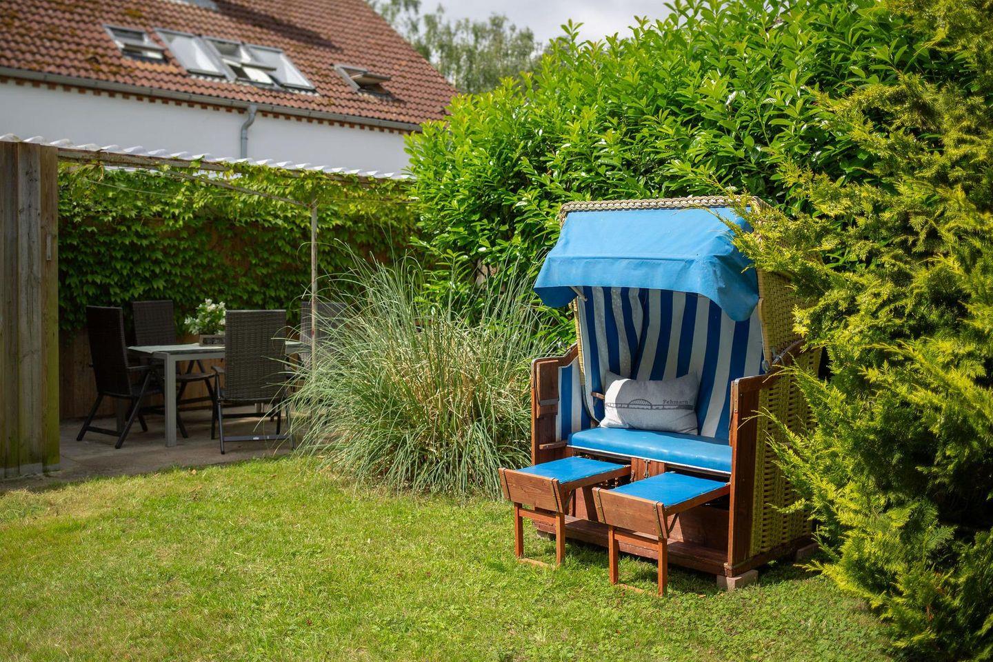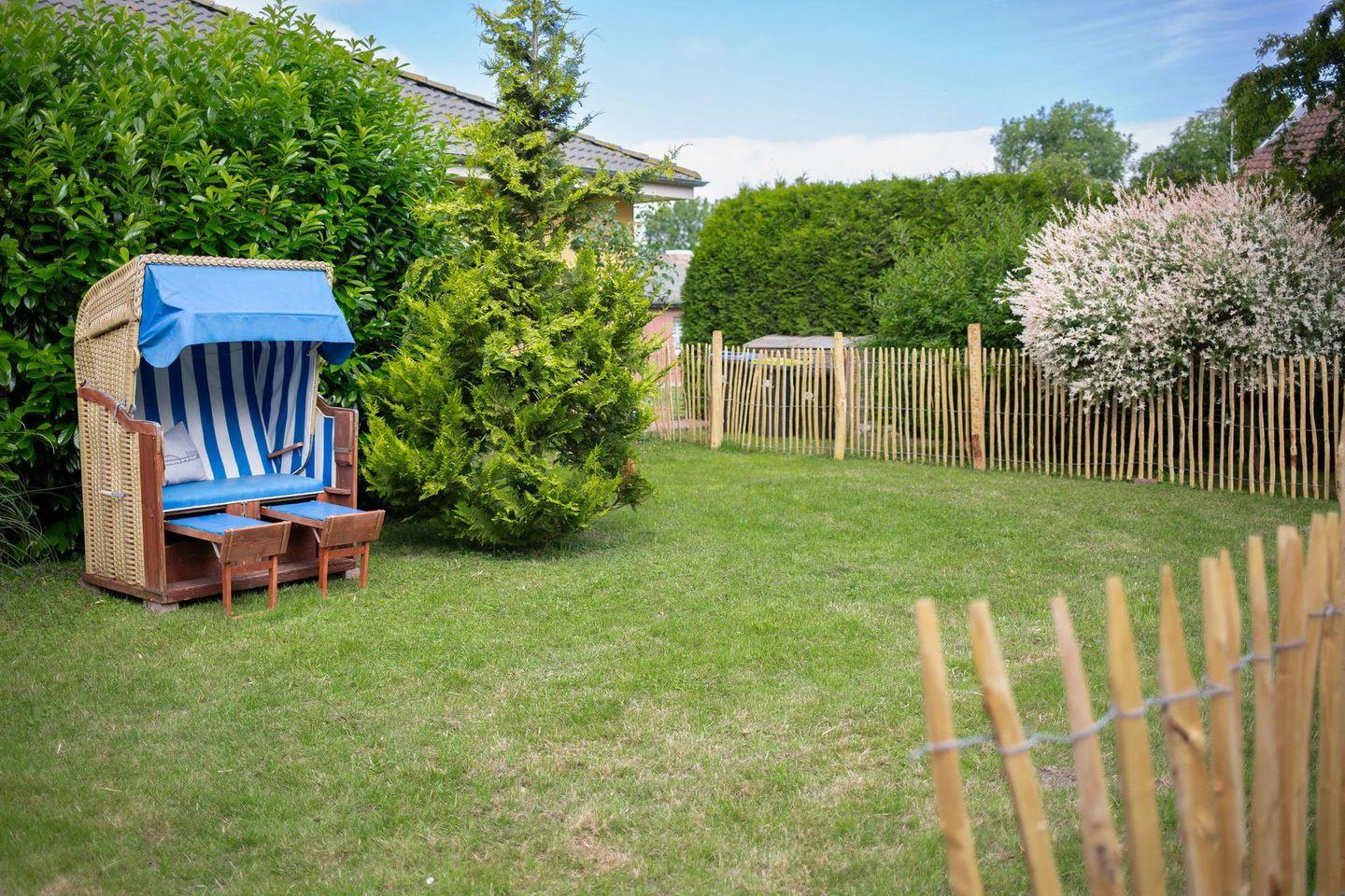 Besonders hervorzuheben ist unser großer, eingezäunter Garten, der exklusiv Ihnen zur Verfügung steht. Hier können Ihre Kinder oder Ihr Hund nach Herzenslust spielen und toben, während Sie auf der Terrasse oder im Strandkorb entspannen oder ein Buch lesen. So können Sie Ihren Urlaub sorgenfrei genießen!