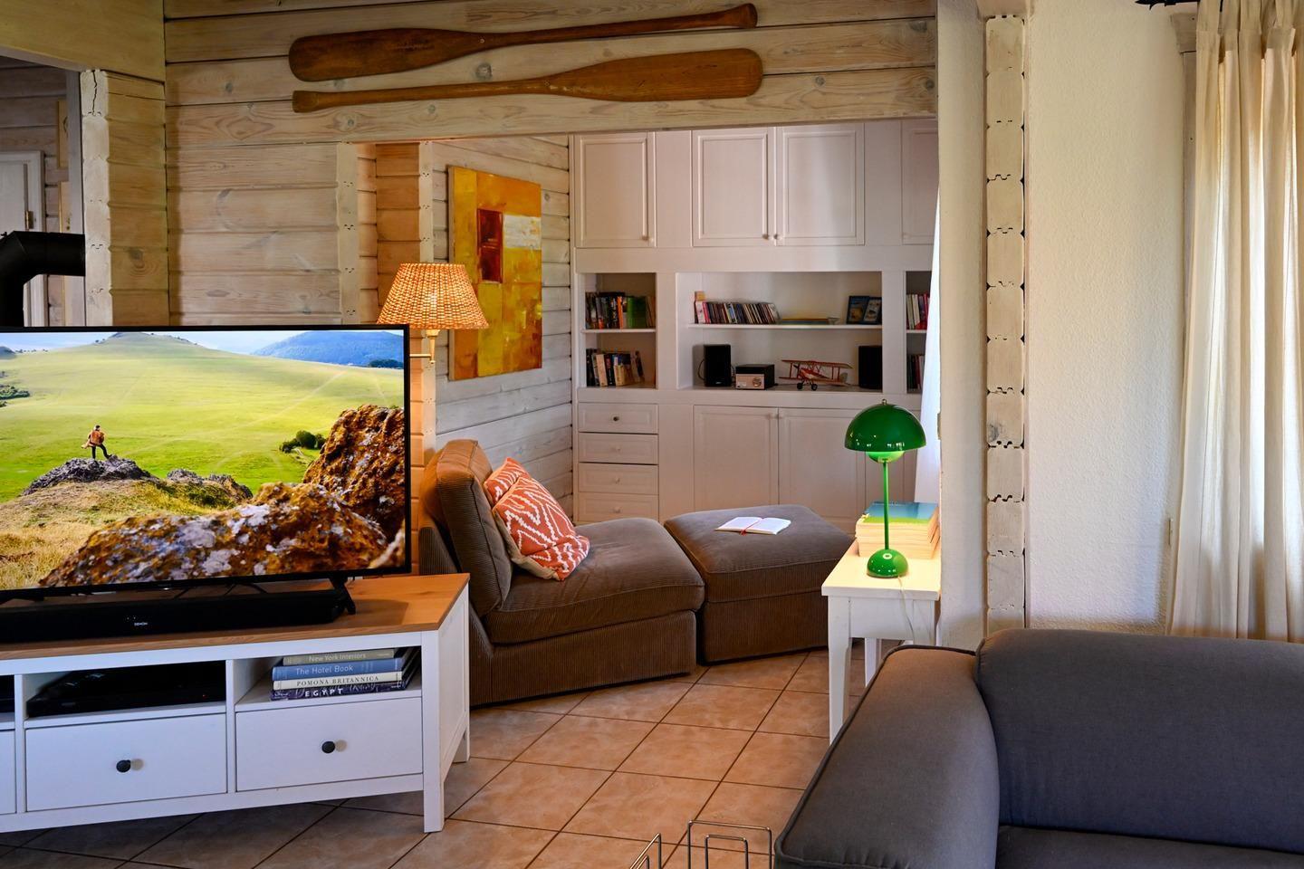 Kaminofen, TV, Blu Ray Player und Stereoanlage. Aktuelle