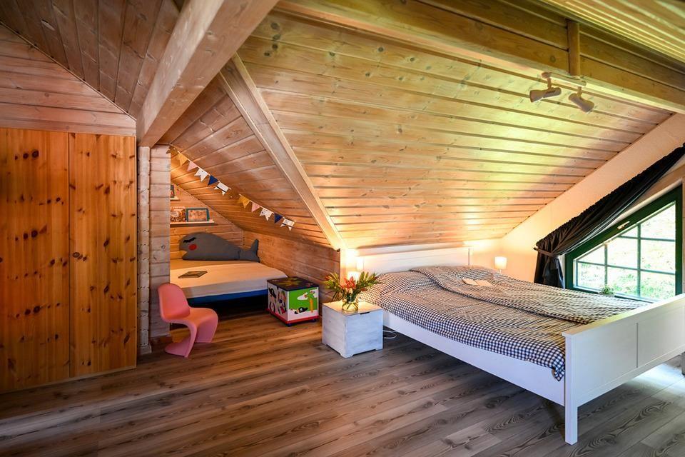 Im Obergeschoss liegt das Elternschlafzimmer (inkl. Babybett
