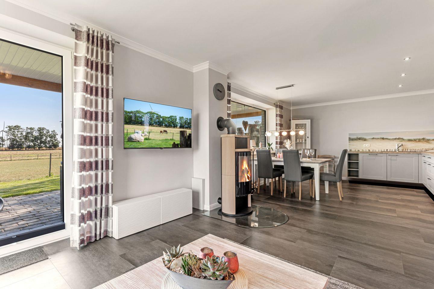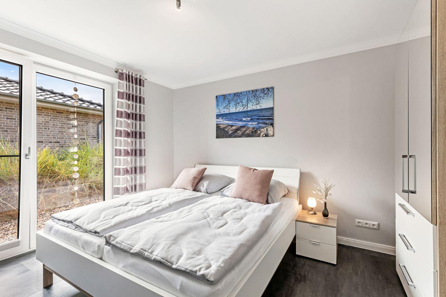 Die großzügige Terrasse lädt mit einem traumhaften Blick auf die umliegende Natur und den nahegelegenen Strand zum Verweilen ein. Lehnen Sie sich zurück und genießen Sie die frische Seeluft auf den bereitgestellten Sonnenliegen oder nutzen Sie den Grillplatz für ein festliches Barbecue mit der Familie oder Freunden. Für die kleinen Gäste gibt es zudem einen Spielplatz mit Rutsche, Sandkasten und Schaukel – ideal für unbeschwertes Vergnügen und Abenteuer.