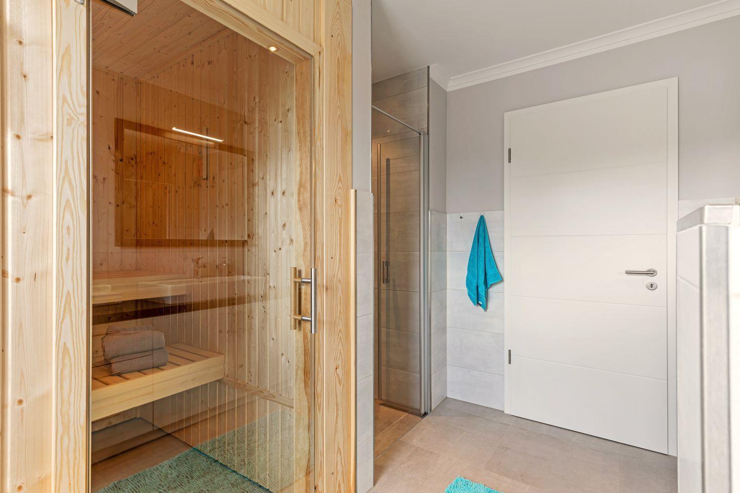 Wenn Sie den Tag mit Wellness und Entspannung ausklingen lassen möchten, haben Sie in der eigenen Sauna des Bungalows die Möglichkeit, ganz für sich zu relaxen.