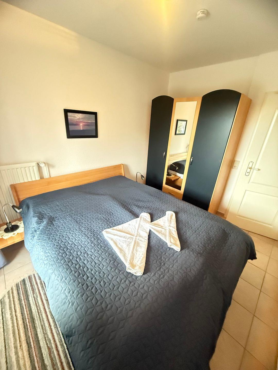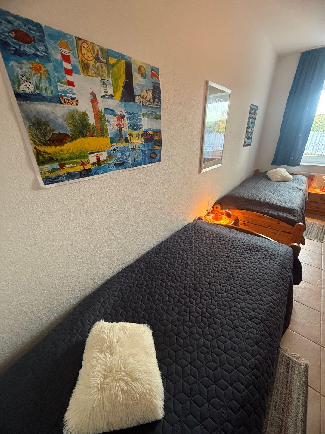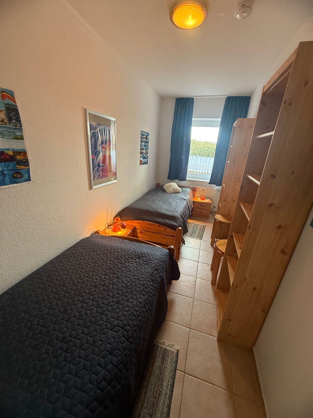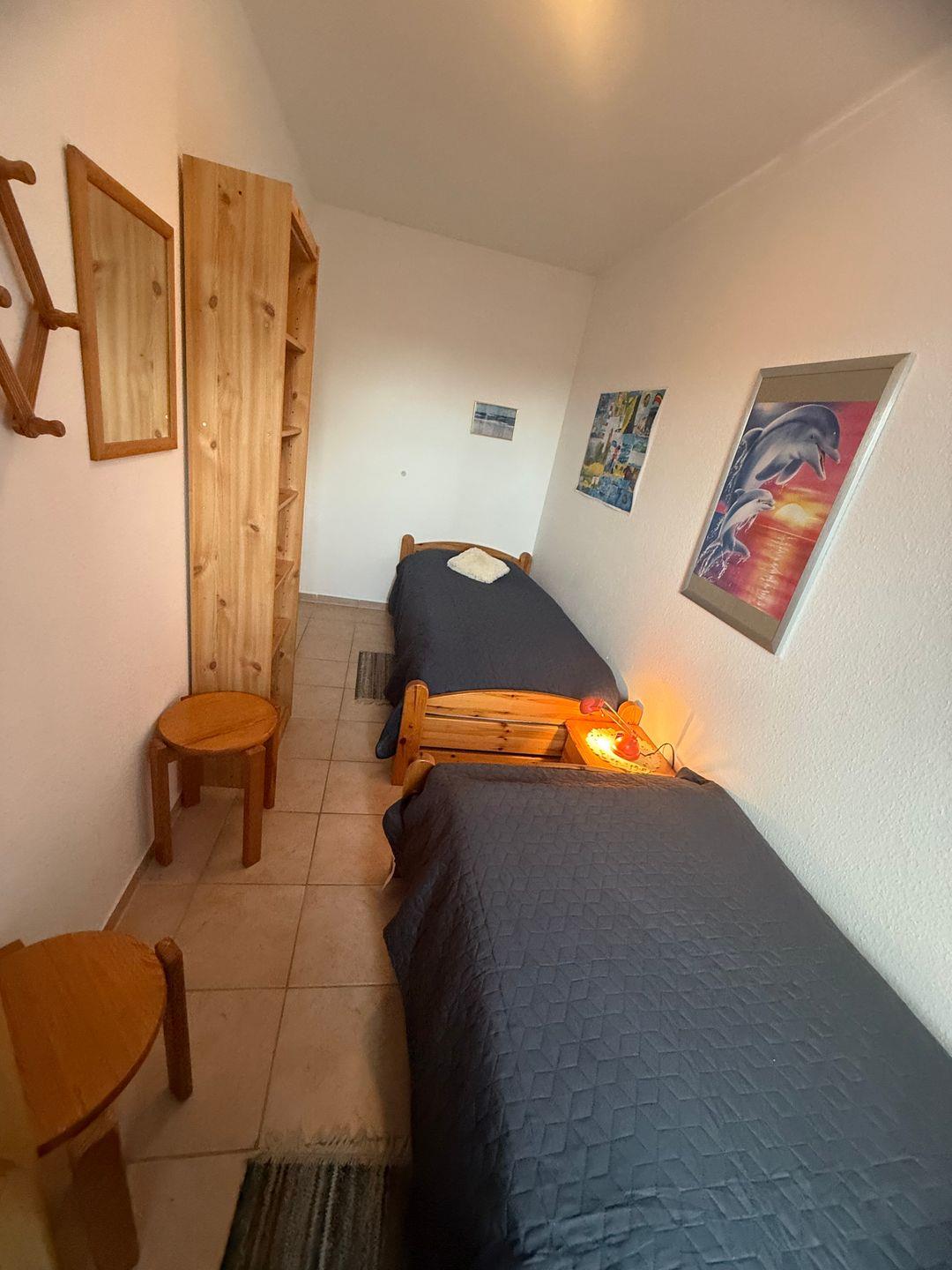 Das zweite Schlafzimmer verfügt über zwei Einzelbetten.