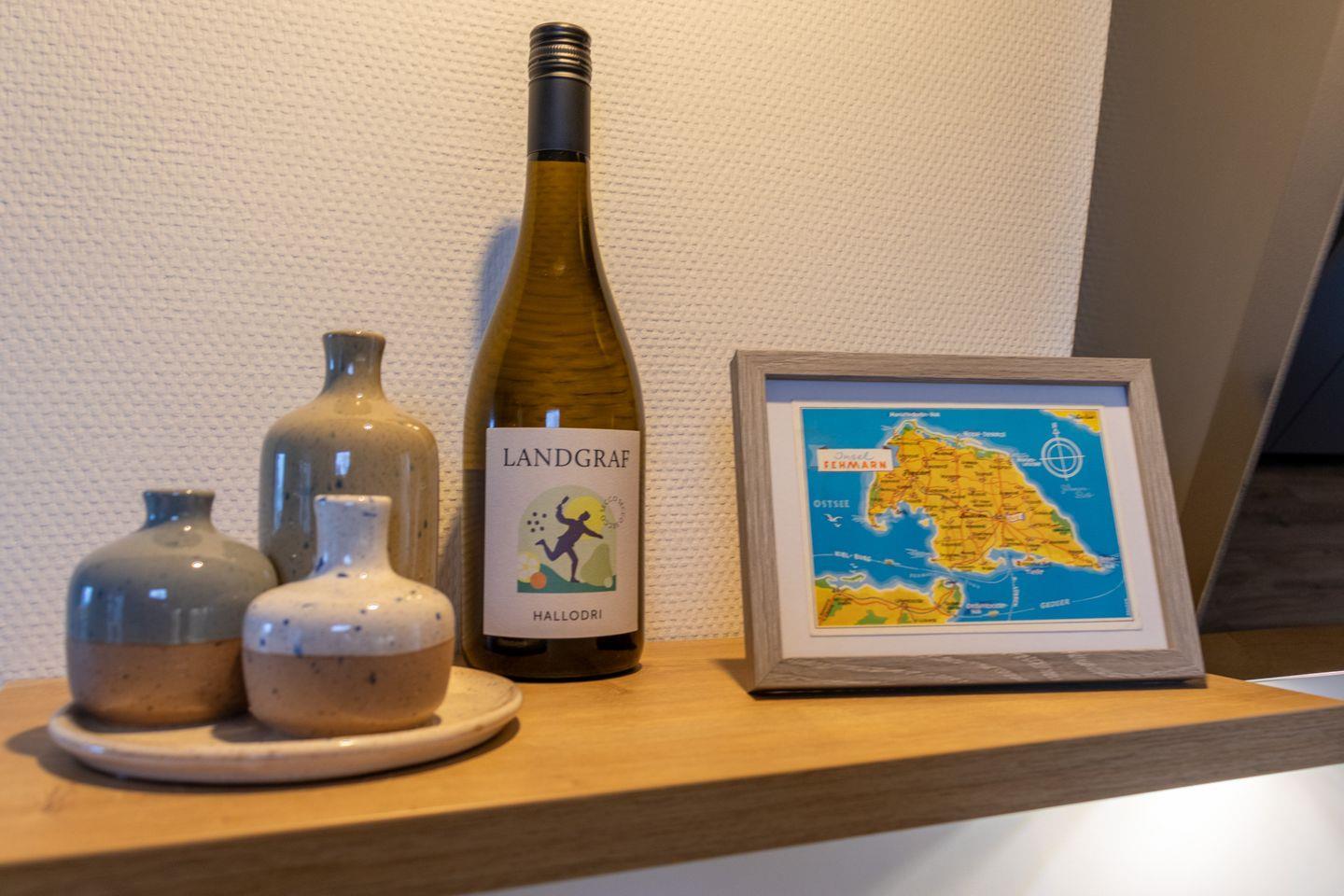 Moderne Ferienwohnung Marienlücht auf Fehmarn mit Sauna, Terrasse und direktem Meerblick, perfekt für Urlaub mit Hund.