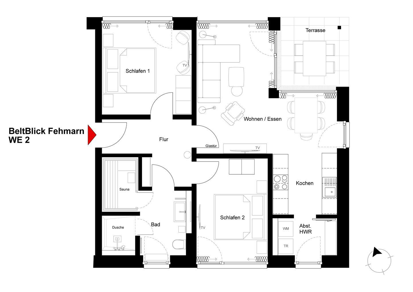 Moderne Ferienwohnung BeltStrand auf Fehmarn mit Sauna, Garten und Meerblick, nur 100 Meter vom Strand entfernt.