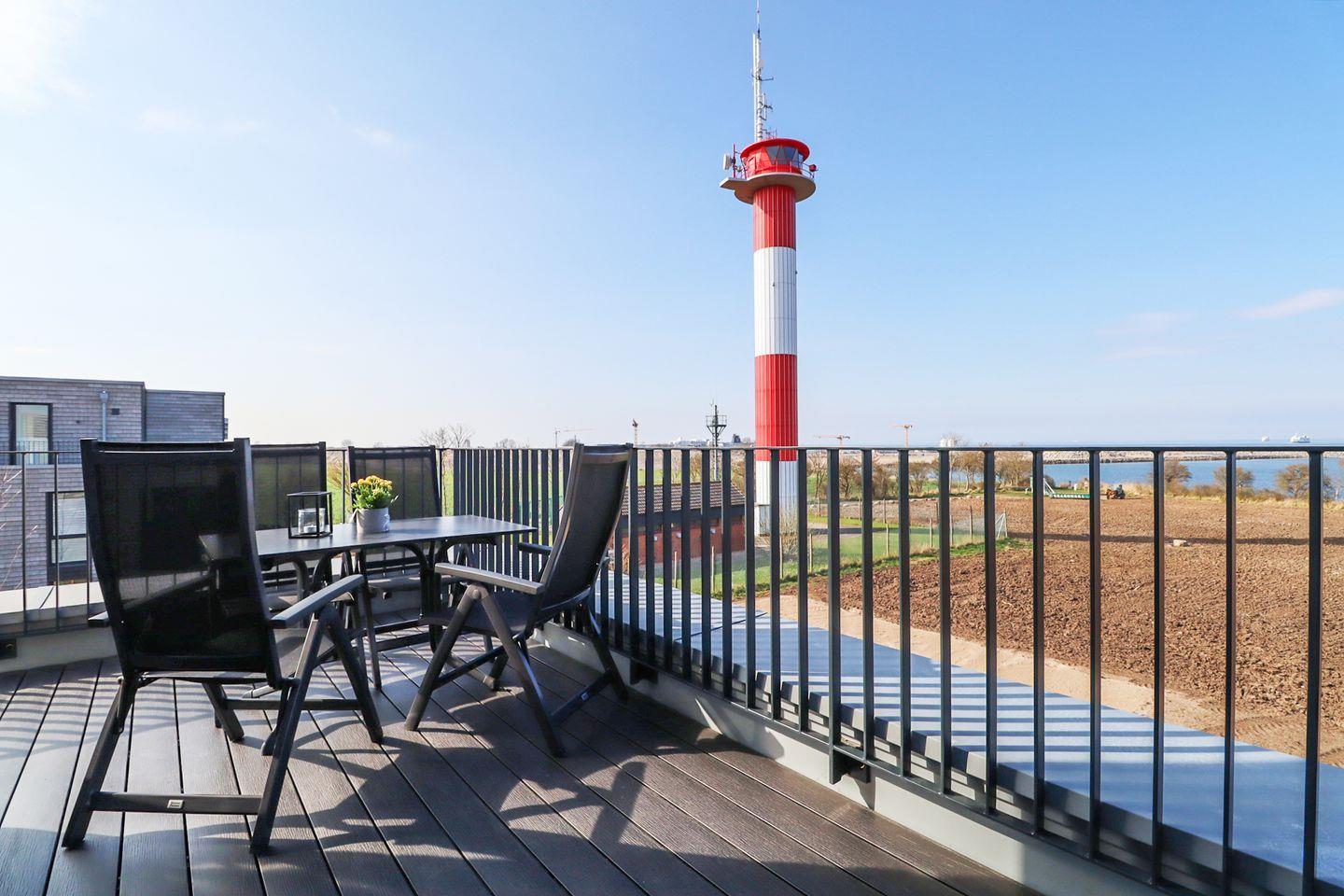 Moderne Ferienwohnung auf Fehmarn mit Dachterrasse, Sauna und direktem Meerblick, nur 100 m vom Strand entfernt.