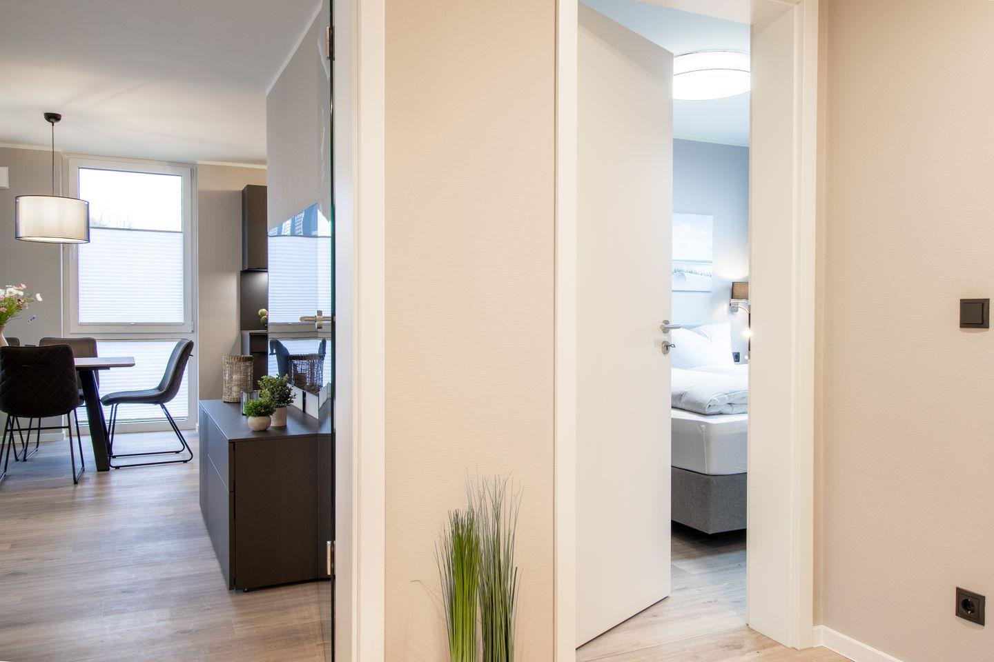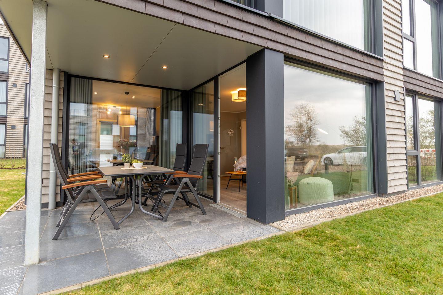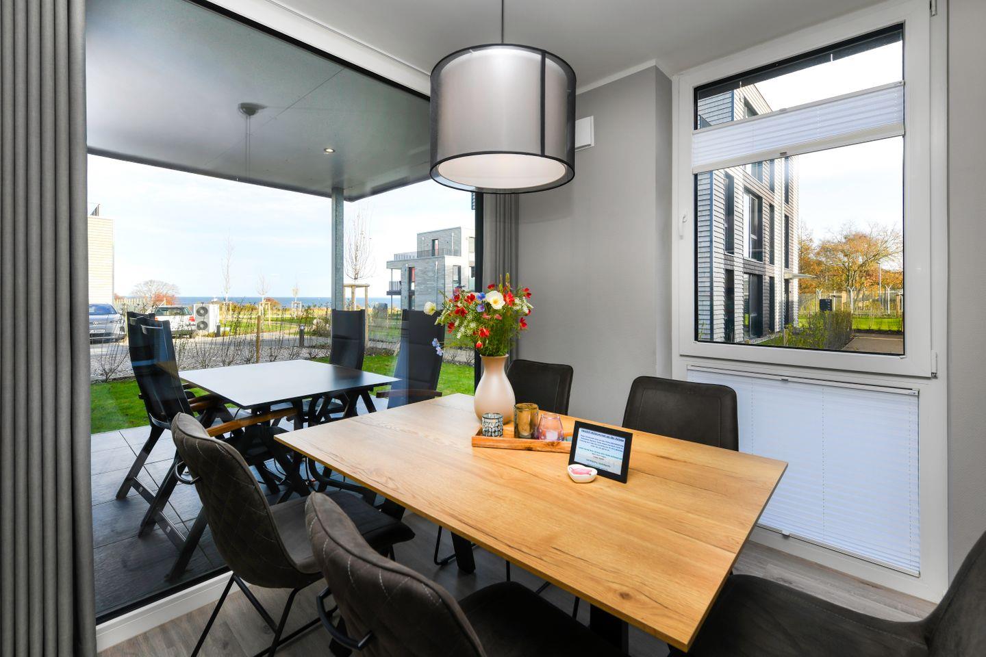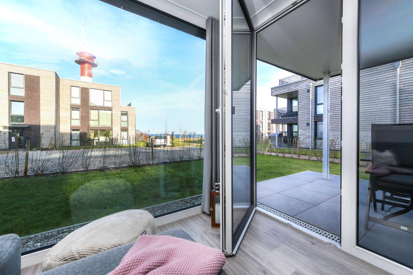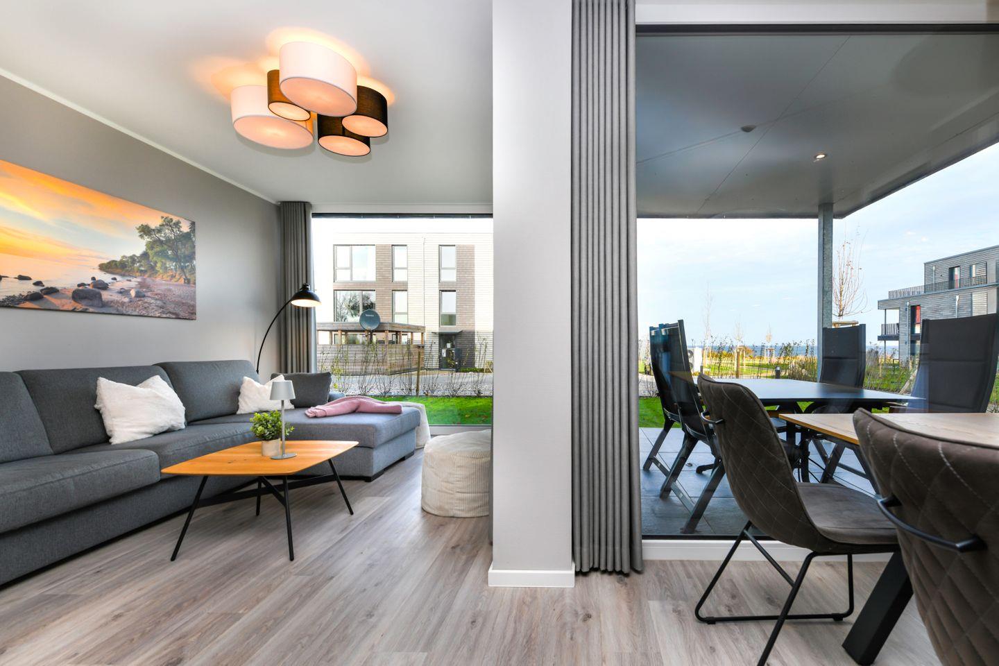 Moderne Ferienwohnung BeltBlick 20 auf Fehmarn mit Meerblick, Sauna und nur 100 m vom Ostseestrand entfernt.