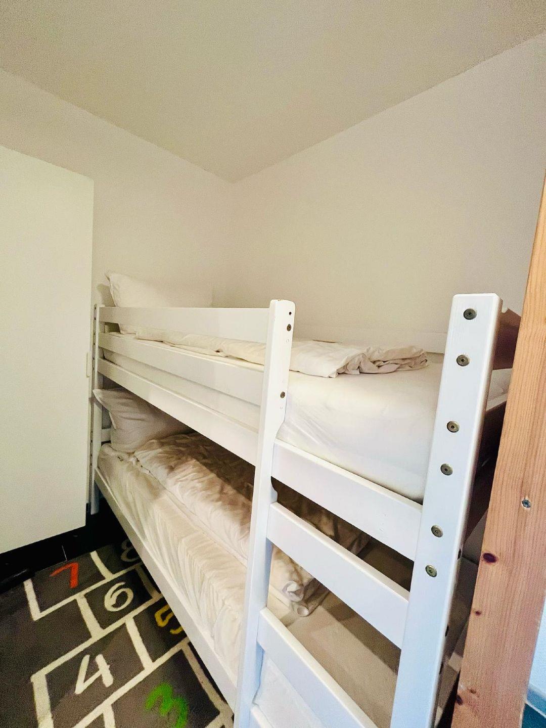 Die Schlafmöglichkeiten bieten Platz für bis zu vier Personen, sodass auch Familien und Gruppen von Freunden hier komfortabel untergebracht werden können. Die moderne Kochnische ist mit allem ausgestattet, was du für die Zubereitung köstlicher Mahlzeiten benötigst. Hier findest du unter anderem einen Herd mit zwei Kochfeldern, eine Mikrowelle sowie eine Kapselmaschine der Marke Cafissimo für einen schnellen Kaffee am Morgen. Geschirr, Besteck und alle möglichen Kochutensilien sind ebenfalls vorhanden, sodass du dich wie zu Hause fühlen kannst.