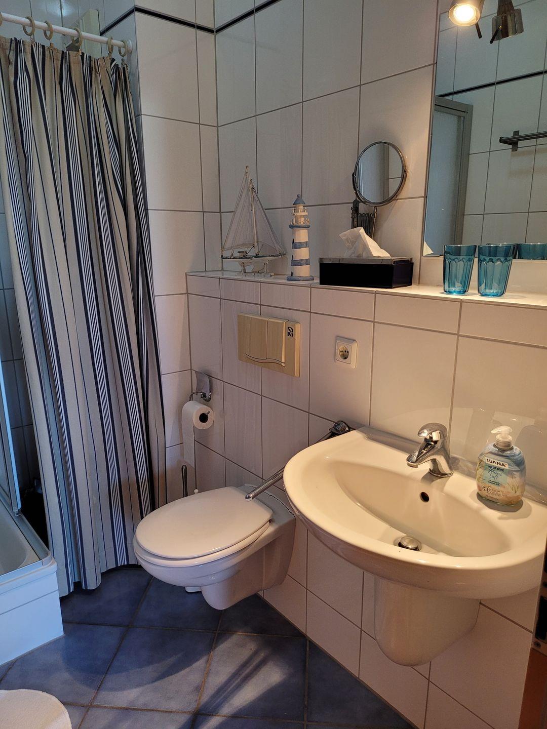 Das Badezimmer verfügt über eine Duschwanne, Waschbecken, Spiegel und WC. Somit sind Komfort und Funktionalität auch hier gewährleistet.