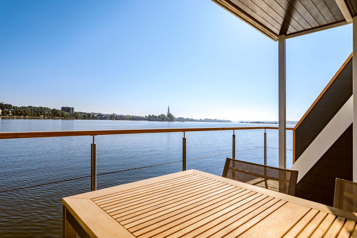 Erleben Sie Erholung pur auf dem Hausboot "TreibGut" mit zwei Terrassen und nachhaltiger Ausstattung direkt am Wasser auf Fehmarn.