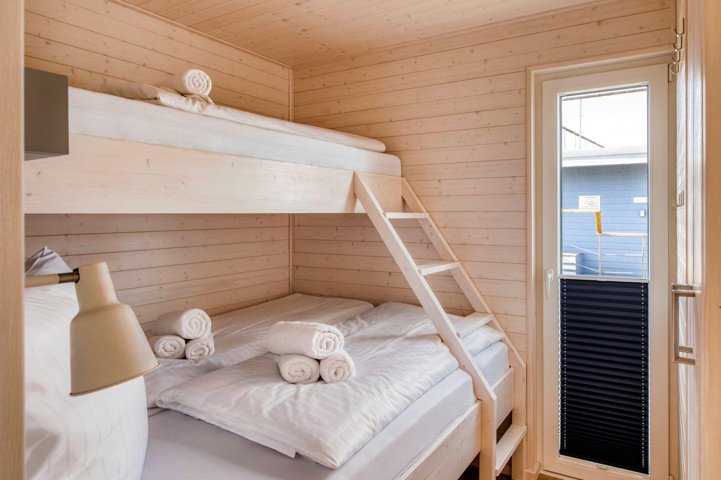 Die "TreibGut" bietet auf ca. 32 m² gemütlichen Komfort für einen entspannten Urlaub auf dem Wasser. Freuen Sie sich auf einen offenen Wohnbereich mit komplett ausgestatteter Küche, zwei separate Schlafräume, Dusche und WC sowie zwei Terrassen – eine überdacht und eine mit Strandkorb auf dem Oberdeck. WLAN, Smart-TV und Bluetooth-Radio sorgen für Unterhaltung, eine Biokläranlage und ein umweltfreundliches Starterpaket für Nachhaltigkeit. Der perfekte Rückzugsort und Ausgangspunkt, um Fehmarn zu entdecken.