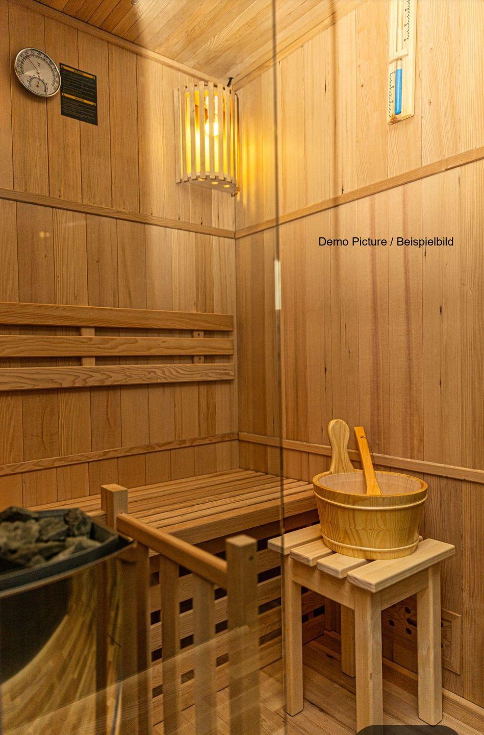 Für Ihr Wohlbefinden sorgt eine umfassende Ausstattung, die höchsten Komfort mit einem Hauch von Luxus verbindet. Klimaanlage und Heizung schaffen zu jeder Jahreszeit die richtige Temperatur, während die Wellness-Sauna zur Eigennutzung ein privates Entspannungserlebnis garantiert. Das moderne Badezimmer verfügt über eine Dusche, WC, Waschbecken, Spiegel und Haartrockner – auch hier bleibt kein Komfortwunsch offen.