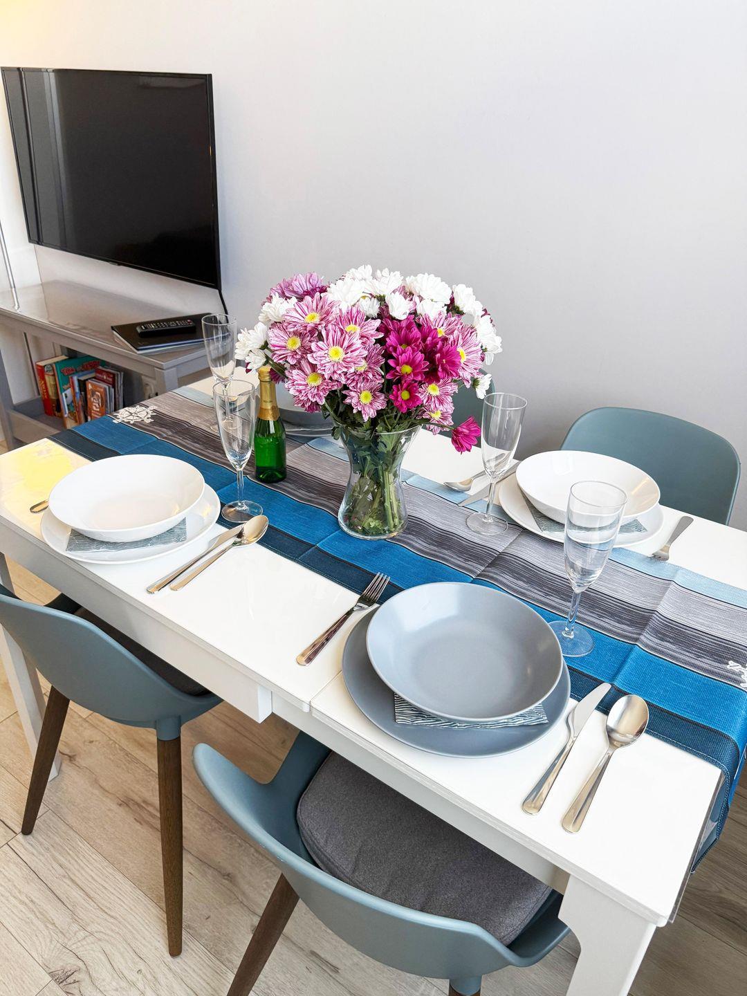 Doppelbett, Flat Screen-TV, Schlafsofa, Esstisch, Kleiderschrank, Sideboard, Spiele, Bücher