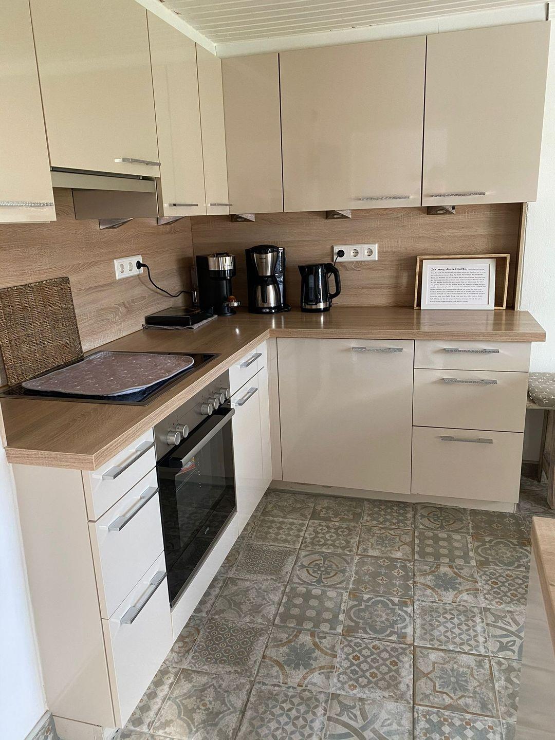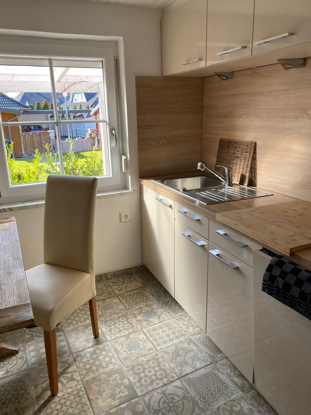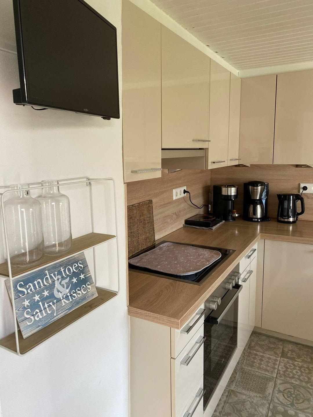Die gemütliche Küche befindet sich direkt neben dem Wohnzimmer und bietet einen Herd/Backofen, Geschirrspülmaschine, Kaffeemaschine, Wasserkocher, Toaster und diverse Küchenhelfer lassen keine Wünsche offen.