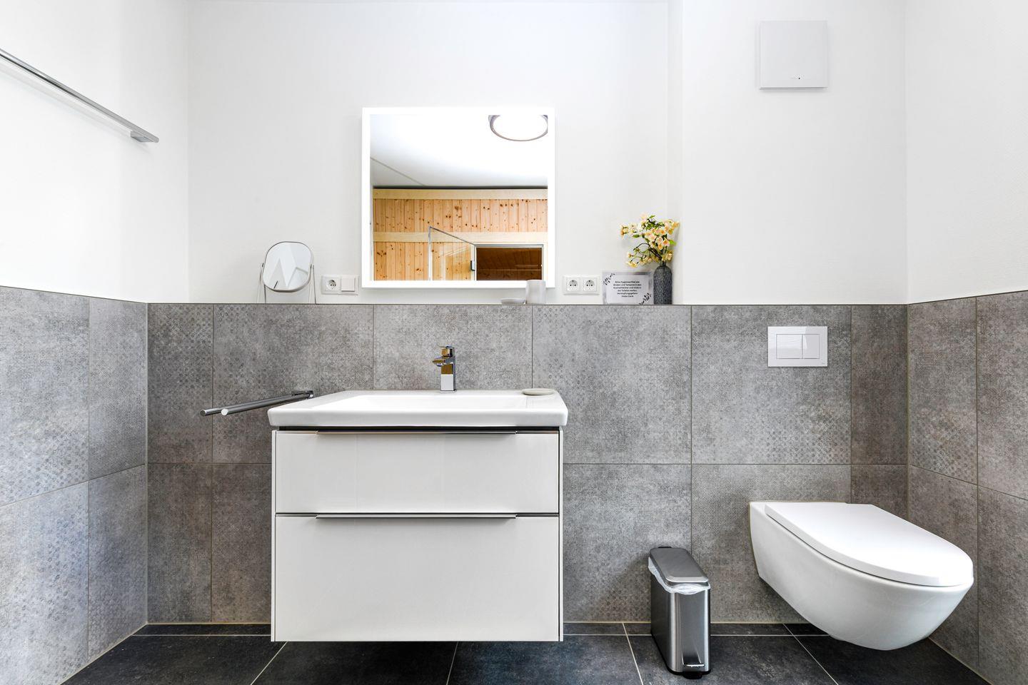 Dein privater Wellnessbereich erwartet dich: Eine moderne Sauna und eine großzügige, ebenerdige Dusche machen jeden Urlaubstag zum Erholungstag. Ob nach einem Strandspaziergang oder einer Fahrradtour – hier kannst du neue Energie tanken und dich rundum verwöhnen.