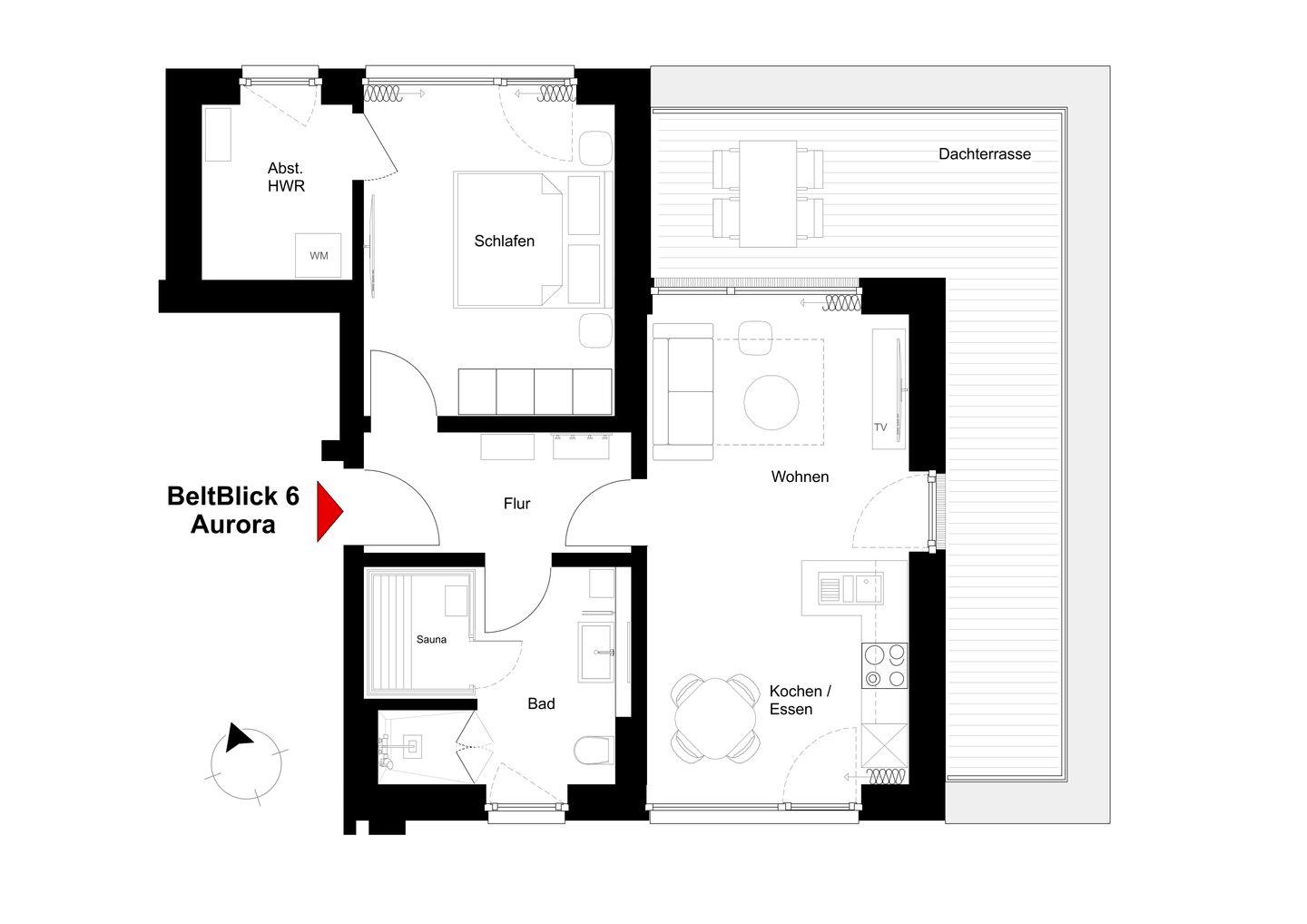 BeltBlick Aurora – Dachterrasse. Sauna. Meerblick. Erholung.