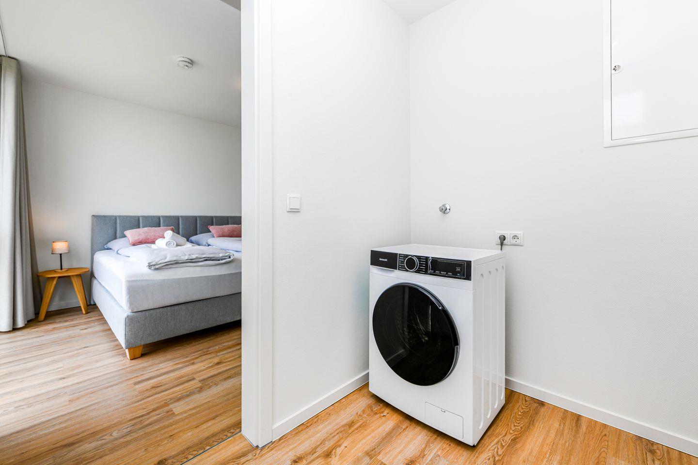 Kontaktloser Check-in über Schlüsseltresor und ein eigener Parkplatz direkt am Haus sorgen für Komfort. Mit dem Aufzug erreichst du die Wohnung barrierefrei. Deine Fahrräder kannst du im abschließbaren Fahrradunterstand mit E-Bike-Lademöglichkeit sicher abstellen. Zudem steht dir eine Waschmaschine jederzeit zur Verfügung – ideal auch für längere Aufenthalte.