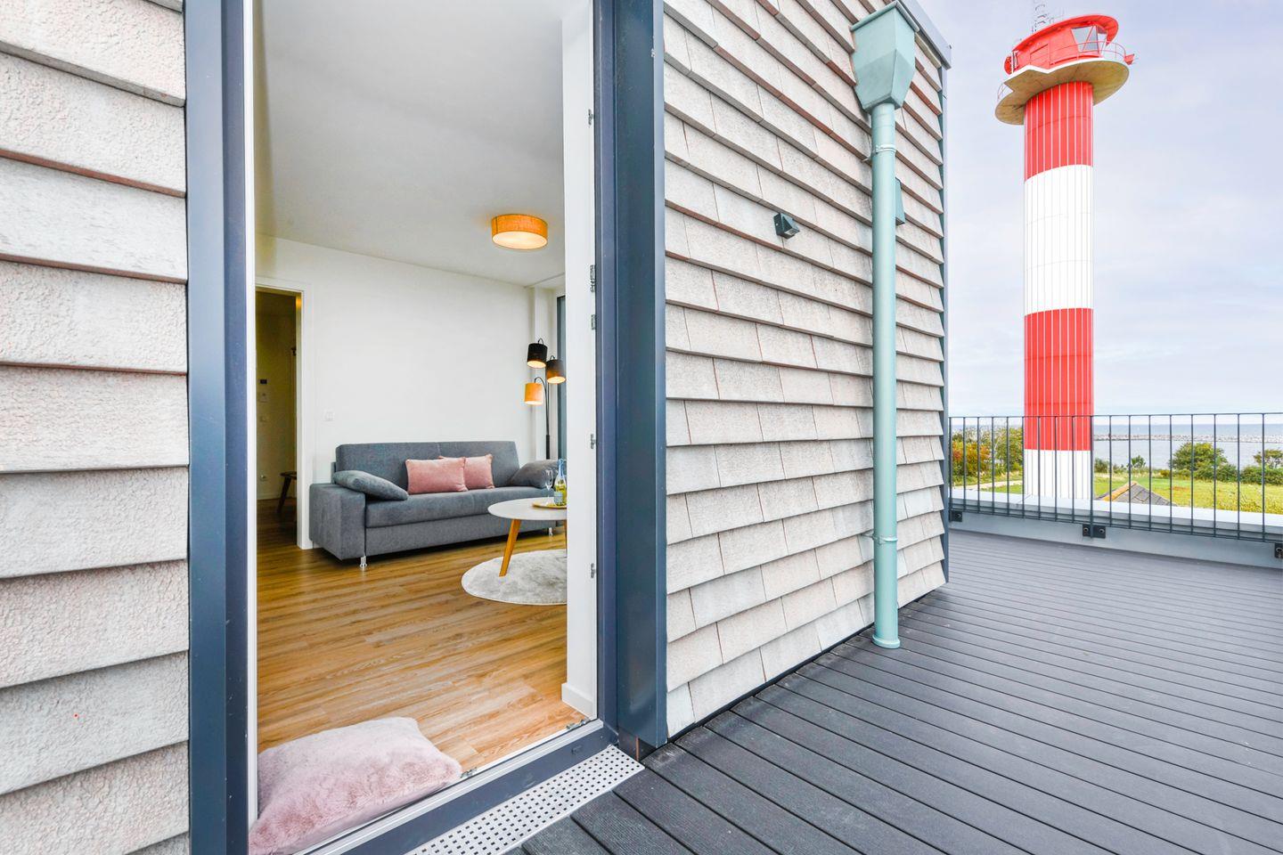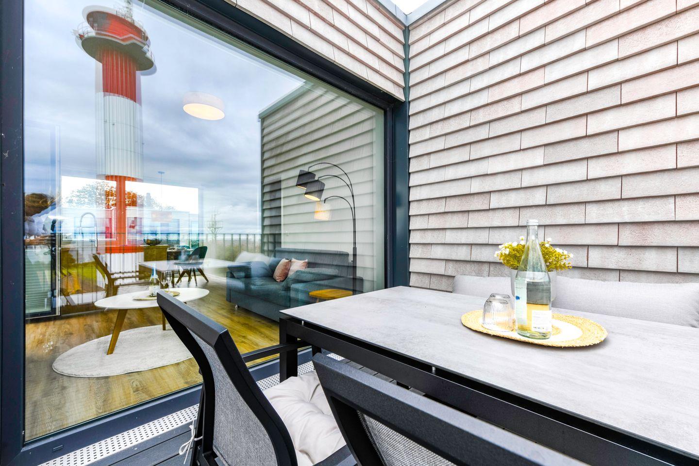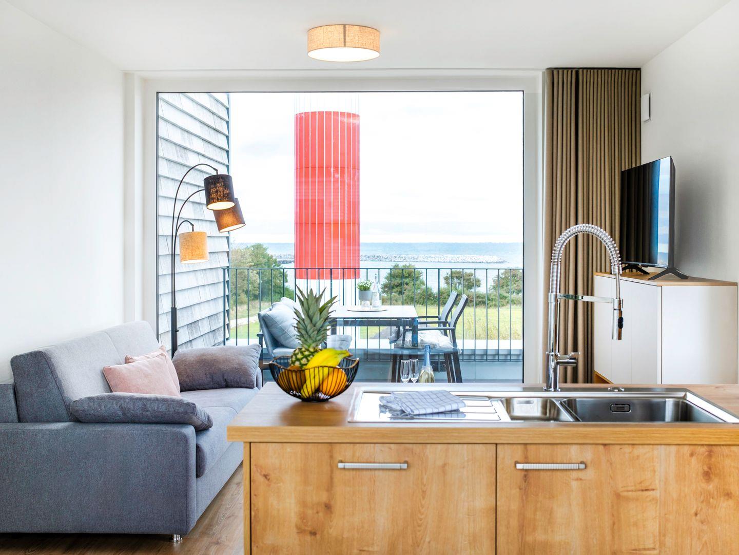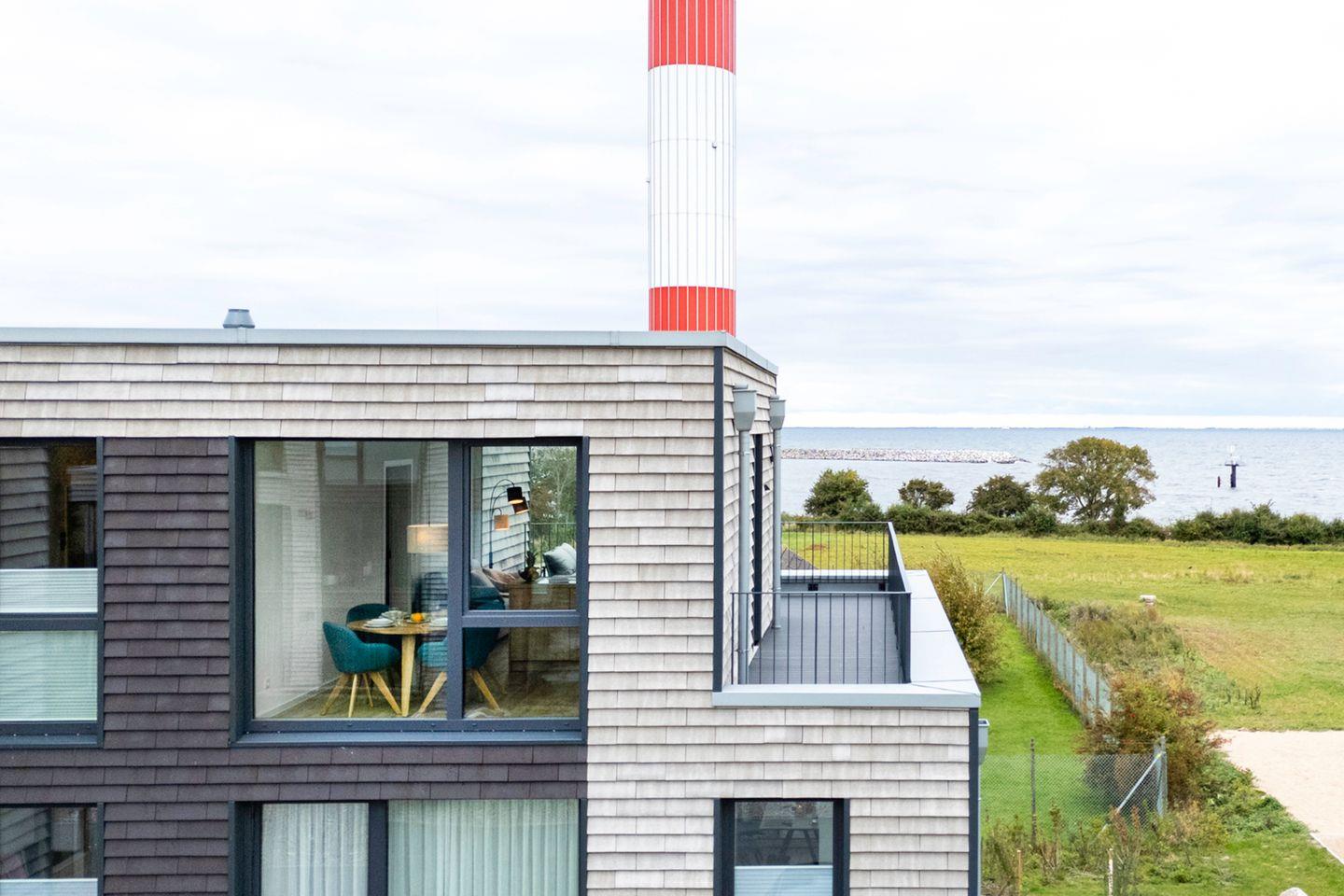 Genieße Meerblick, Sauna, Dachterrasse und Strandnähe in der modernen Ferienwohnung BeltBlick Aurora auf Fehmarn.