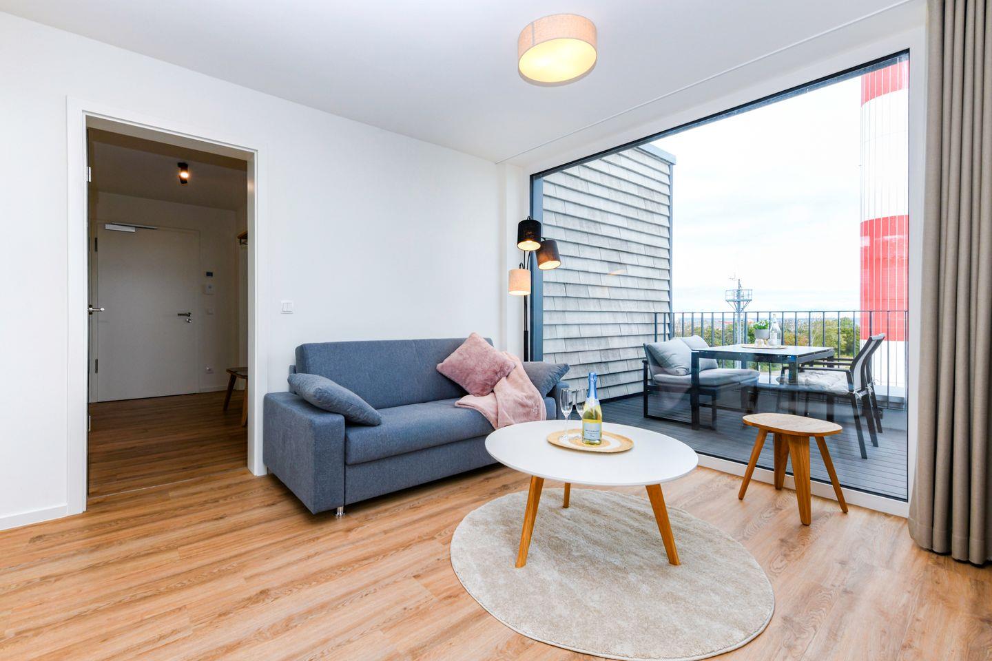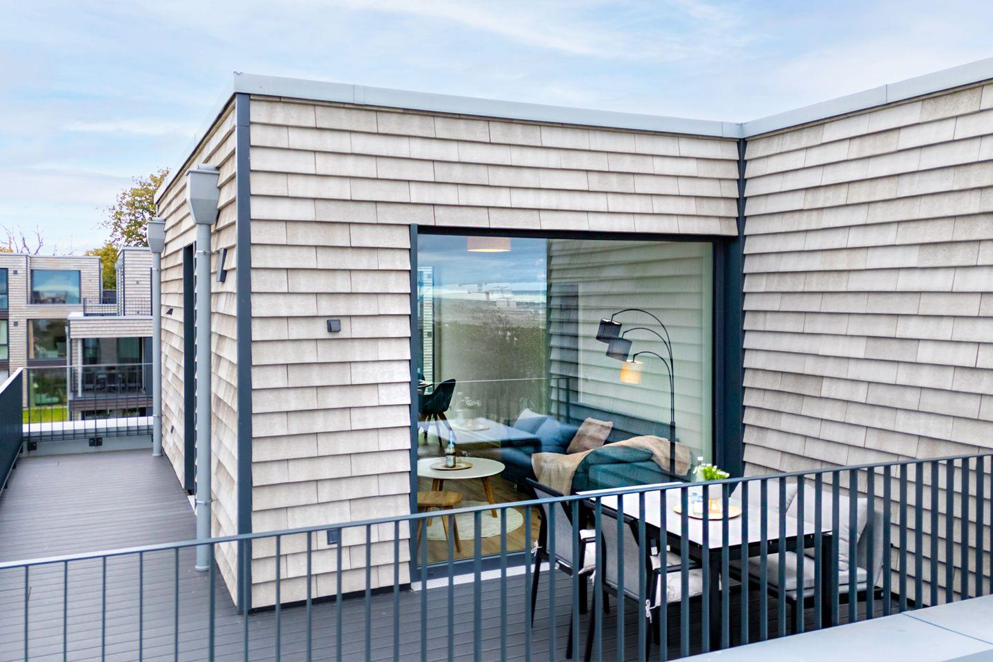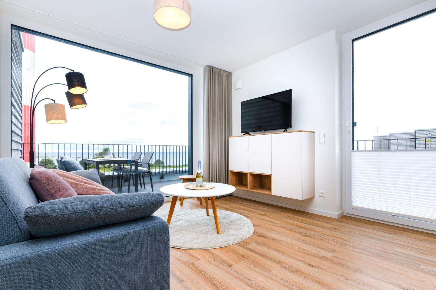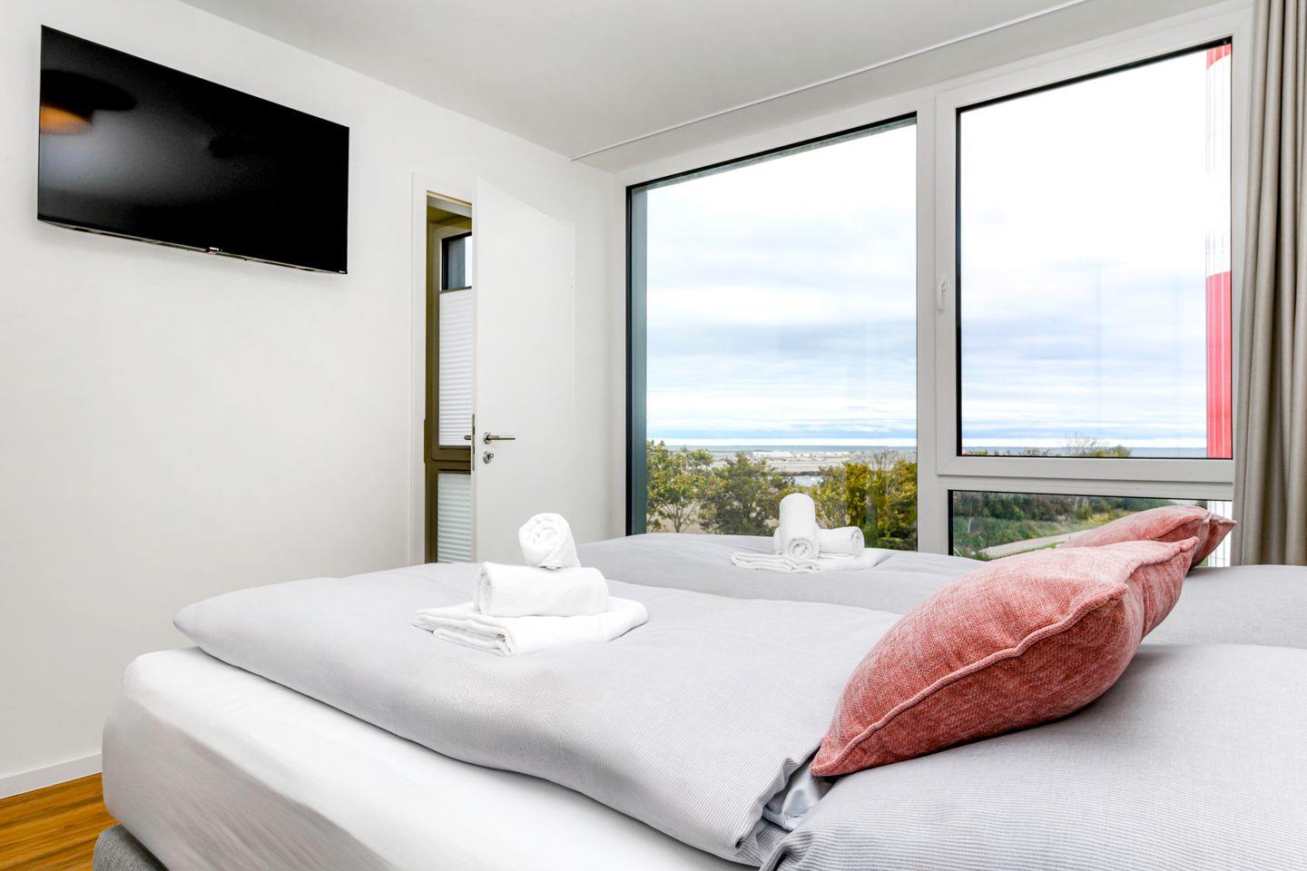 Genieße Meerblick, Sauna, Dachterrasse und Strandnähe in der modernen Ferienwohnung BeltBlick Aurora auf Fehmarn.