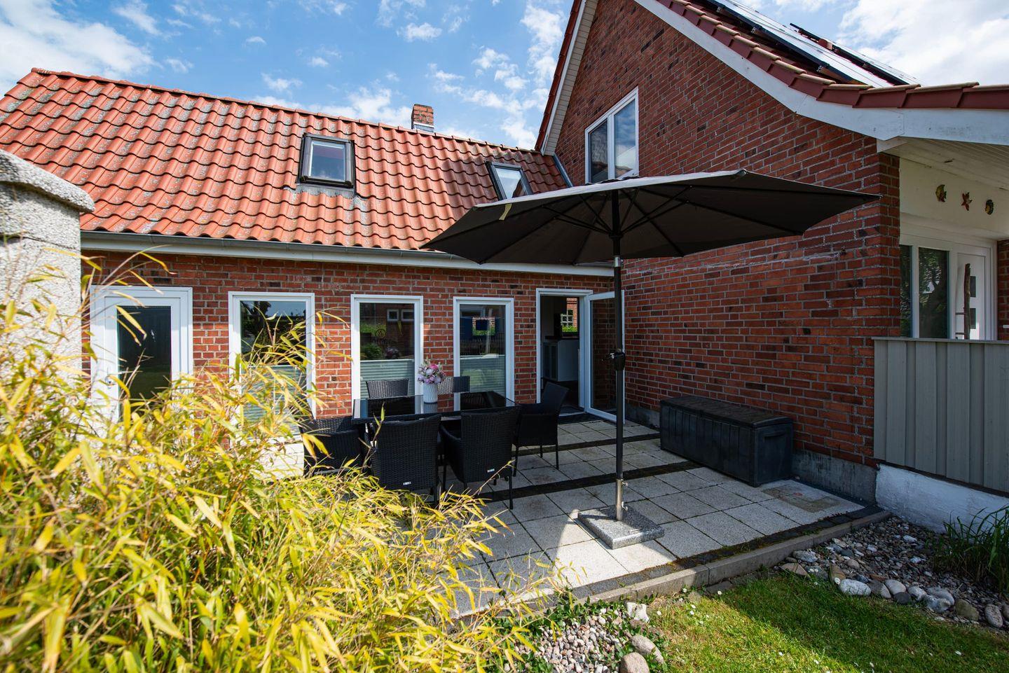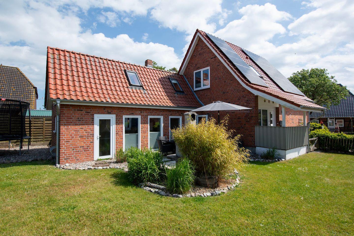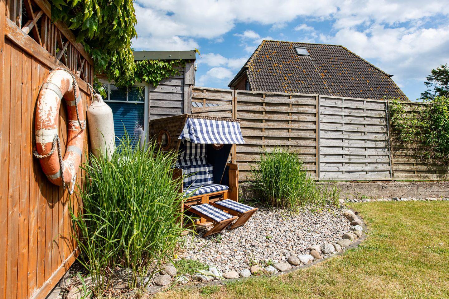 Freistehendes Ferienhaus Huus Strandgut auf Fehmarn mit Sauna, großem Garten und vielfältigen Freizeitmöglichkeiten.